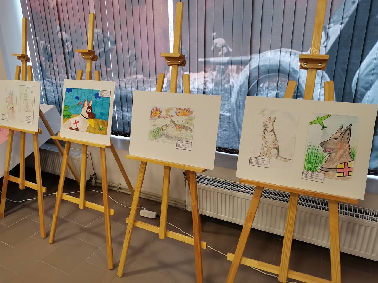 В выставочном центре ребята увидели на выставке свои рисунки, которые они готовили ко Дню фронтовой собаки.
