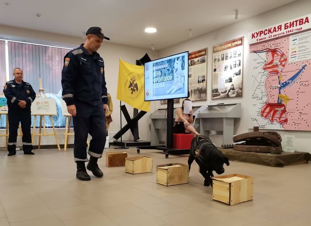 Заведующий отделом краеведения и популяризации культурного наследия Ольга Павловна Ткаченко рассказала об истории проведения Дня фронтовой собаки, инициатором которого выступил Музей Победы, и важной роли служебных собак в годы Великой Отечественной войны и в наши дни. В Курске День фронтовой собаки отмечается с 2019 года по инициативе регионального отделения РВИО.