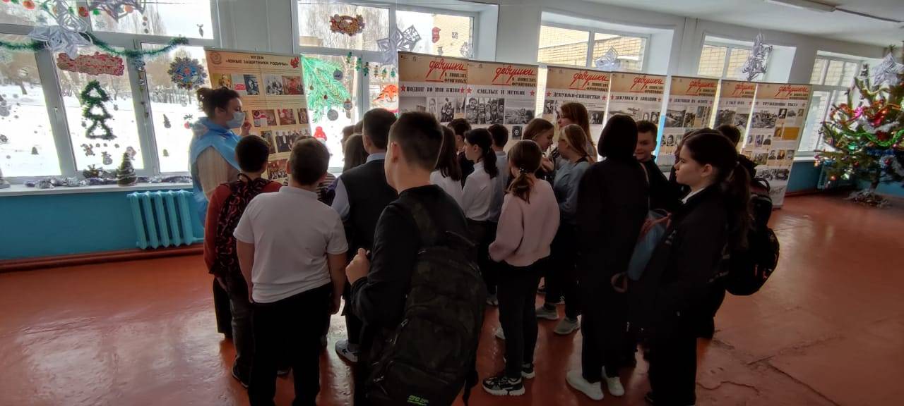 21 декабря 2021 года в рамках проекта «Миротворческие встречи в школах Курской области» учащимся школы посёлка Студенок Железногорского района Курской области была представлена мобильная документальная фотовыставка «Девушки в шинелях фронтовых». Сотрудники музея, члены РВИО Л.С. Холтобина, А.С. Давыдов и Е.А. Добросердова рассказали ученикам о подвигах и героических действиях юных участниц Великой Отечественной войны, которые были санинструкторами, связистами, автоматчицами и даже пилотами.