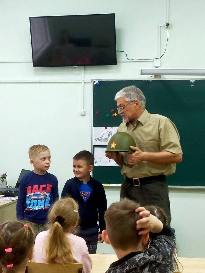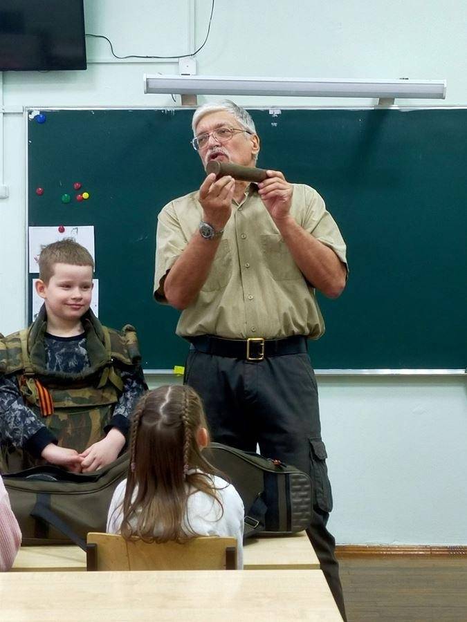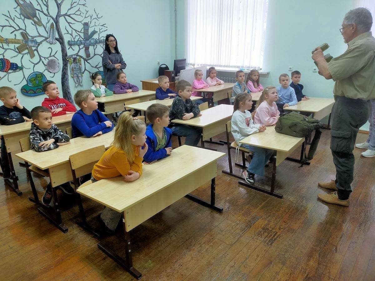 Виктор Иванович рассказал о безопасности при обнаружении взрывоопасных предметов, показал, как себя нужно вести, как действовать при обнаружении на прогулочной площадке этих предметов.