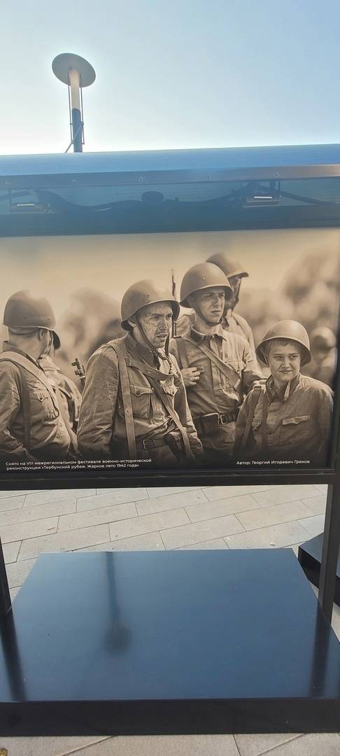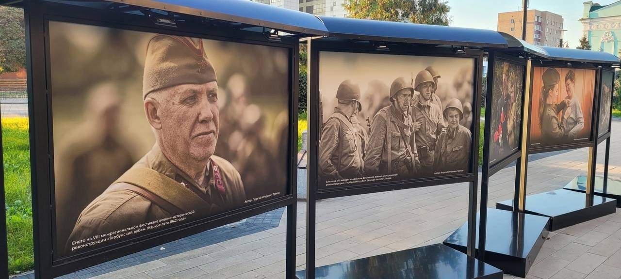 На бульваре между памятником «Сынам полков» и областной научной универсальной библиотекой им. Н.Н. Асеева открылась фотовыставка по итогам регионального конкурса «Мужество и доблесть курян».