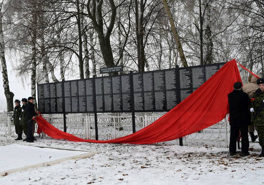 Средства на изготовление мемориальных плит были выделены Центру «Поиск» в порядке грантовой поддержки Администрацией Курской области и региональным комитетом молодежной политики. Списки погибших были подготовлены членами РВИО, активистами рабочей группы редколлегии областной Книги Памяти Евгением Бутенко и Игорем Цукановым.