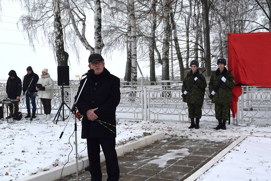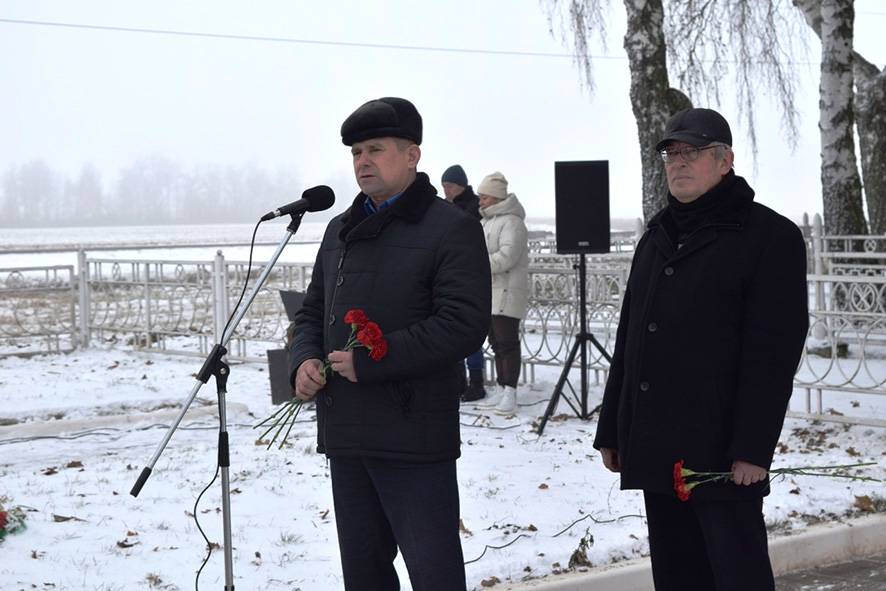 Участники митинга минутой молчания почтили память земляков, погибших в ходе специальной военной операции – Андрея Воронова и Романа Журавлева. А после открытия плит была вновь объявлена минута молчания, в память о погибших советских воинах, навсегда оставшихся в поныровской земле. В честь героев Отечества над мемориалом раздался звон установленного здесь набатного колокола.
