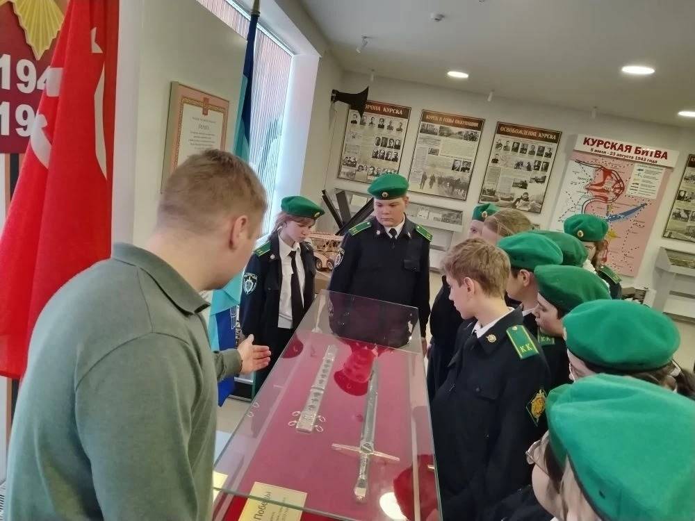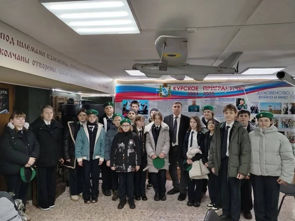 В канун первой годовщины освобождения Суджи от неонацистов, 12 марта 2026 года, кадеты 6"б" класса им. Е.И. Пронина средней школы № 5 по приглашению Татьяны Юрьевны - мамы Евгения Игоревича Пронина, пограничника, героически погибшего при защите курского приграничья в 2022 году, посетили выставочный центр «Курск - город воинской славы». Экскурсовод Олег Левашов рассказал кадетам об истории Курской крепости, о жесточайших боях за Курск в годы Великой Отечественной войны, Курской битве, героях-курянах.