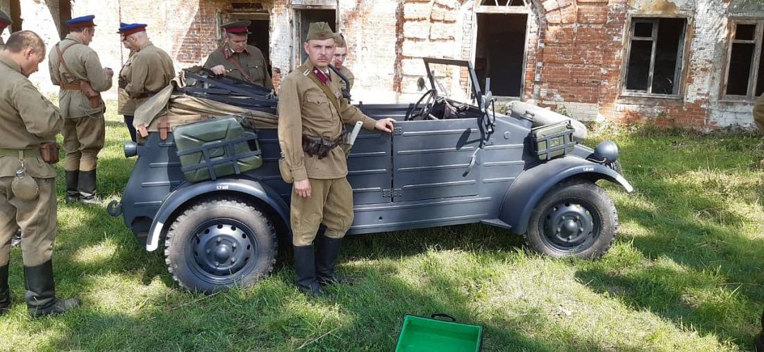 Участники реконструкторского боя буквально вжились в роли. Сам Денис Владимирович сыграл бойца красноармейца. Подготовка к участию в рекострукции была колоссальной. Так, у Дениса Трубникова форма образца с правильными петлицами, обувь. Даже стрижка предвоенных времен. Оружие участникам предоставила компания «Беларусфильм».