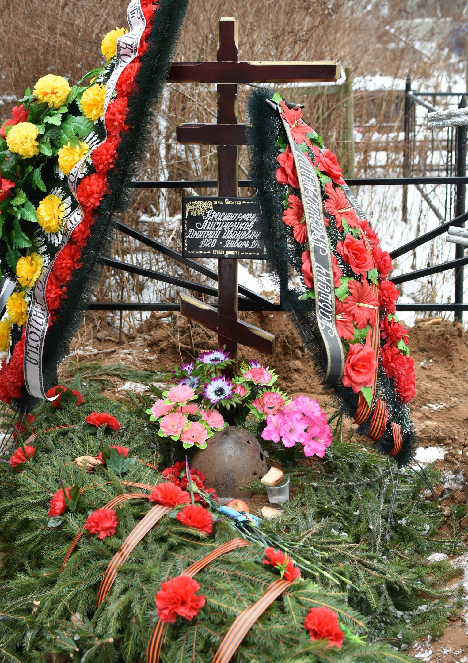 Внуку солдата Владимиру Лисиченкову были переданы личные вещи и бланк смертного медальона бойца. Дмитрий Лисиченков похоронен рядом с матерью.