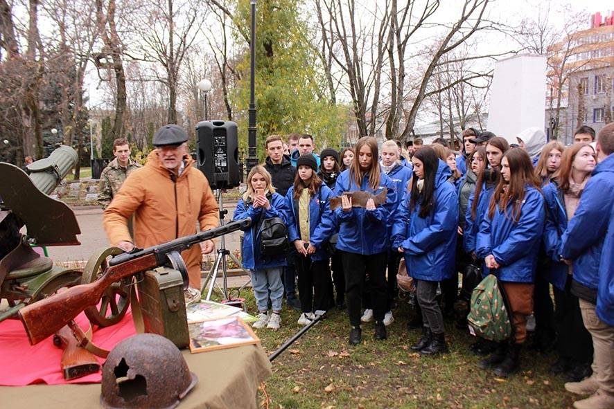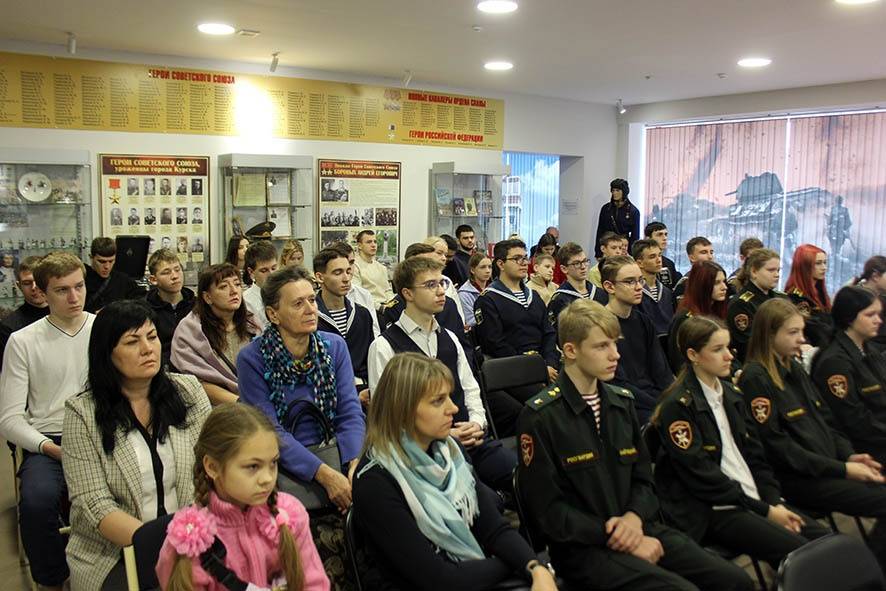 В выставочном зале «Курск – город воинской славы» школьникам и студентам был показан документальный фильм «Рубежи обороны. Курск. 1941 год», а представили его зрителям люди, принимавшие участие в создании картины: Почетный гражданин города Курска, председатель городского Совета ветеранов И.В. Малков, руководители регионального отделения РВИО В.В.Коровин и А.Н. Манжосов.
