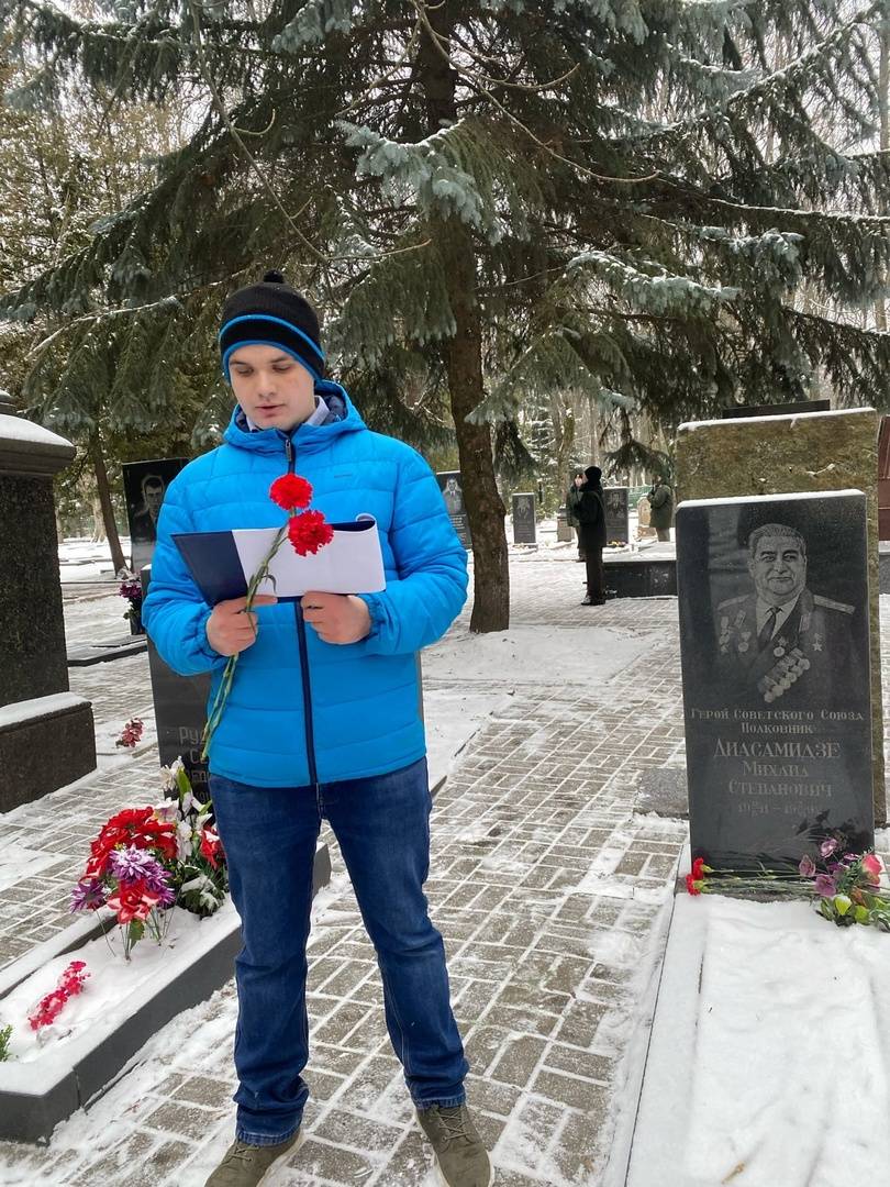 В акции приняли участие активисты молодежной секции регионального отделения и сотрудники Центра историко-культурного наследия. Они возложили цветы к могилам Константина Минаевича Блинова, Георгия Алексеевича Кокурина, Николая Матвеевича Бубнова, Григория Шаумовича Калустова, Михаила Степановича Диасамидзе, Ивана Митрофановича Чехова, Владимира Алексеевича Баранищева. Студенты из патриотического клуба «Порубежник» ЮЗГУ подготовили краткие биографические справки о героях с описанием подвигов, озвучив их перед участниками акции.