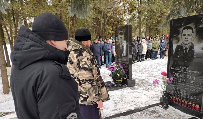 5 марта 2023 года, в годовщину гибели бойца Курского ОМОН, Героя России Андрея Хмелевского на Мемориале павших прошел митинг, посвященный его памяти. У могилы Героя собрались представители силовых структур, родственники, сослуживцы. Командир ОМОН «Финист» полковник полиции Илья Архипов отметил, что память об Андрее жива, а его подвиг остается примером для всех военнослужащих и сотрудников Росгвардии. Руководитель военного отдела курской Епархии иерей Дионисий отслужил литию. Участники митинга возложили цветы к могиле Андрея Хмелевского. Его мама Ирина Николаевна поблагодарила всех, кто хранит память о сыне.