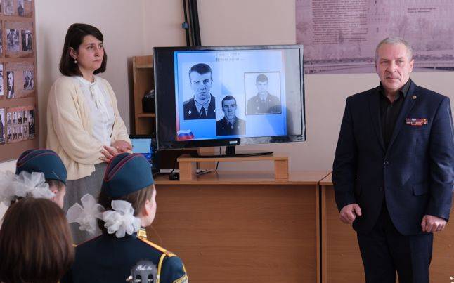 В штабе Поста №1 юнармейцы вспоминали подвиги погибших при исполнении служебного долга на Северном Кавказе сотрудников СОБР: майора милиции Олега Ладыгина, старшего лейтенанта милиции Владимира Тимашкова и старшего лейтенанта милиции Александра Алябьева. На уроке мужества присутствовали почетные гости: председатель Совета ветеранов войны, труда, ВС и правоохранительных органов Курской области, член РВИО Геннадий Ветров, ветеран СОБР Юрий Кучеренко, ветеран ОМОН, член РВИО Владимир Быканов, а также представители ряда общественных организаций.