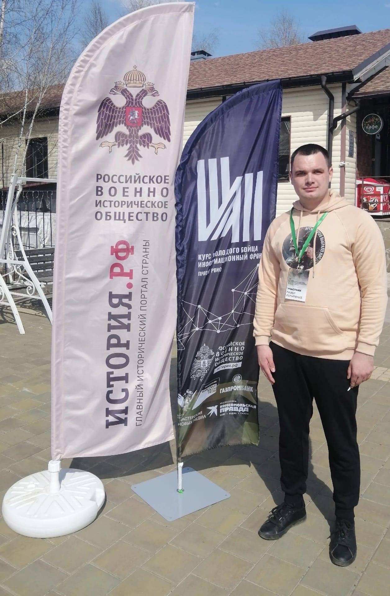 Член Российского военно-исторического общества, активист студенческого патриотического клуба «Порубежник, студент юридического факультета ЮЗГУ Павел Потапенко представляет РО РВИО в Курской области и наш регион на Всероссийском историко-просветительском форуме РВИО «Курс молодого бойца. Информационный фронт».