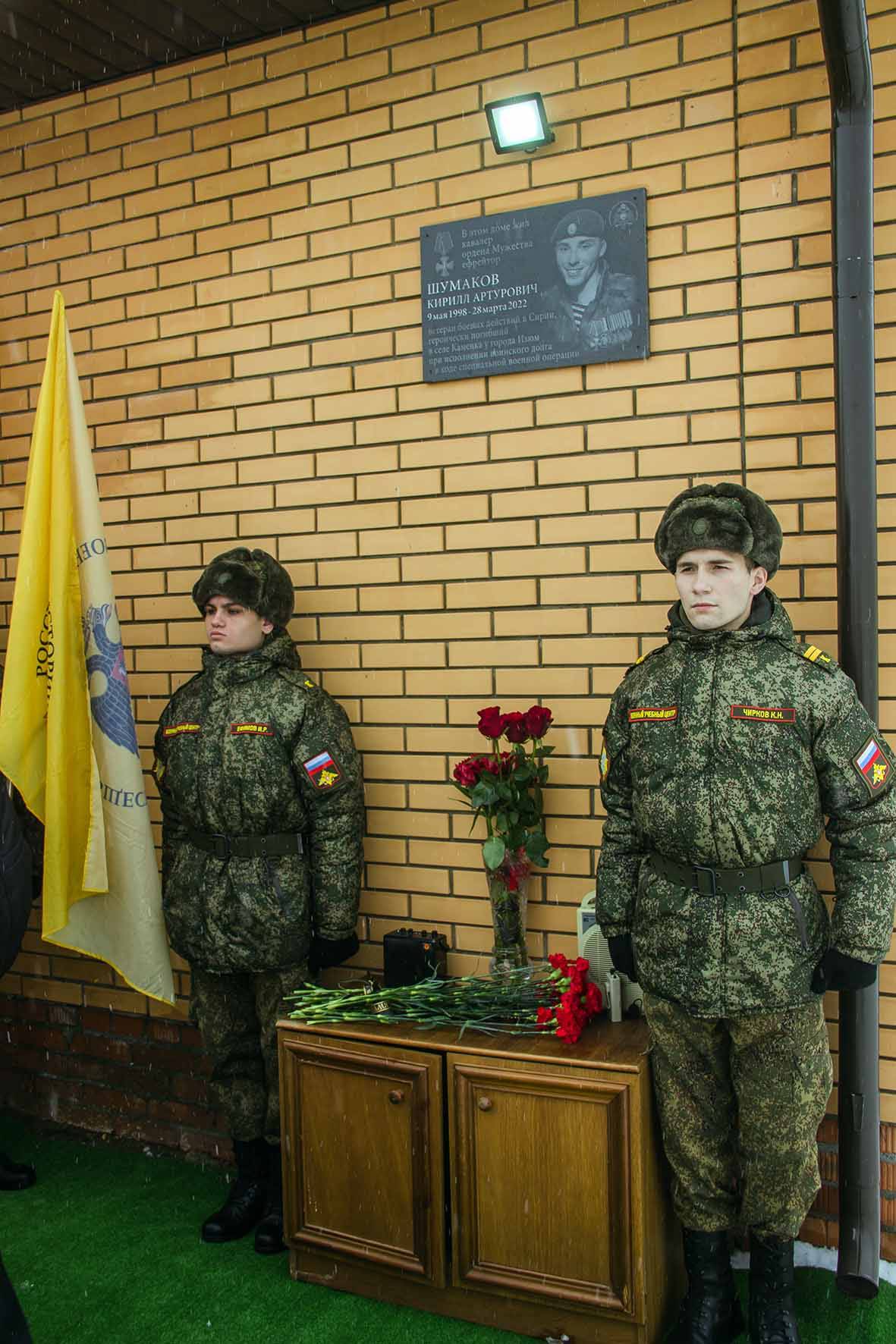 Мемориальная доска установлена по инициативе родственников погибшего военнослужащего силами регионального отделения Российского военно-исторического общества.