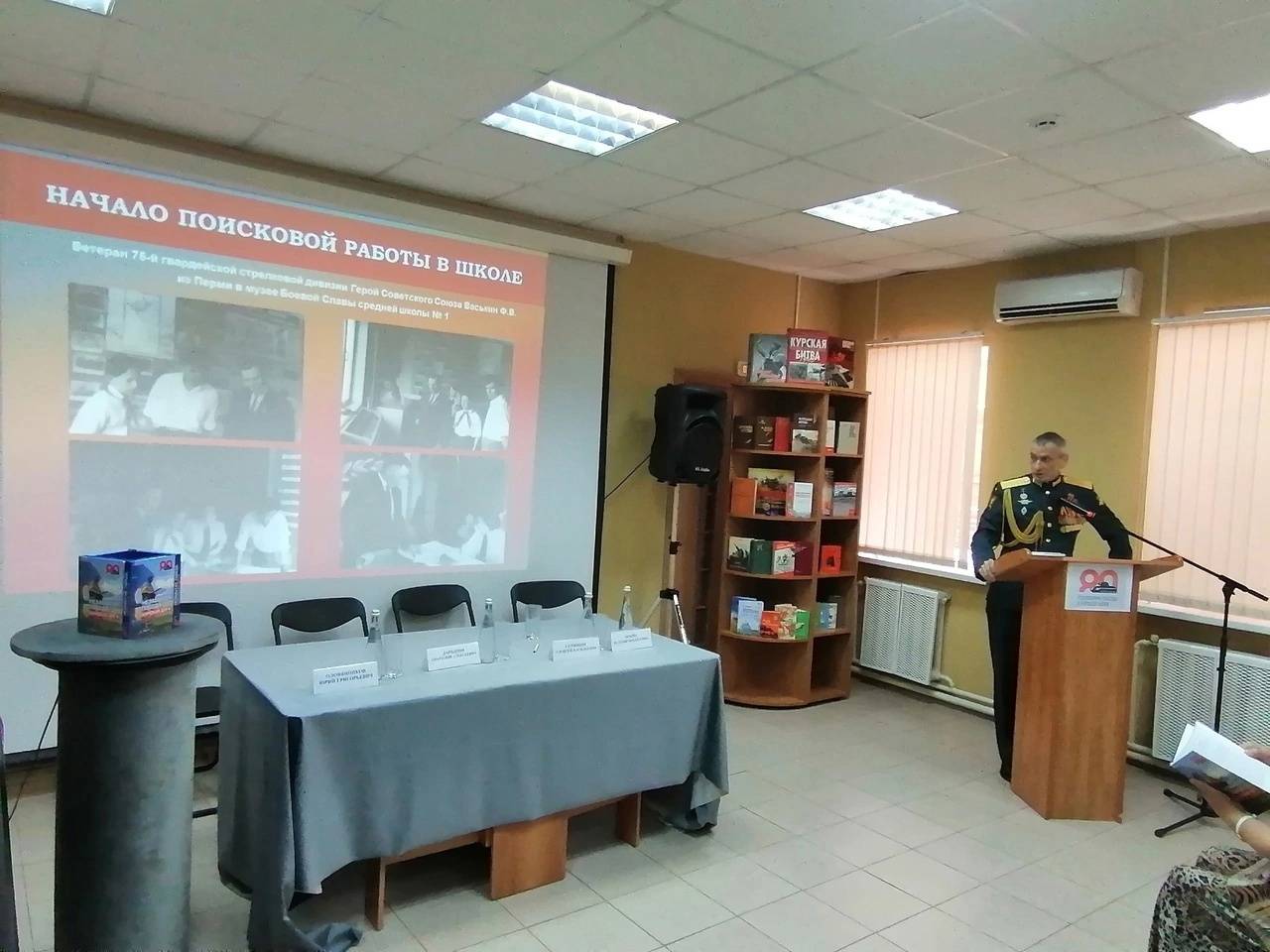Руководитель музея Боевой славы 75-й гвардейской стрелковой дивизии (Школа № 1 города Курска) О.В. Якунин говорил о роли школьного музея в популяризации памяти о героических событиях Курской битвы. Он представил уникальные воспоминания участников Курской битвы, которые хранятся в музее школы №1.