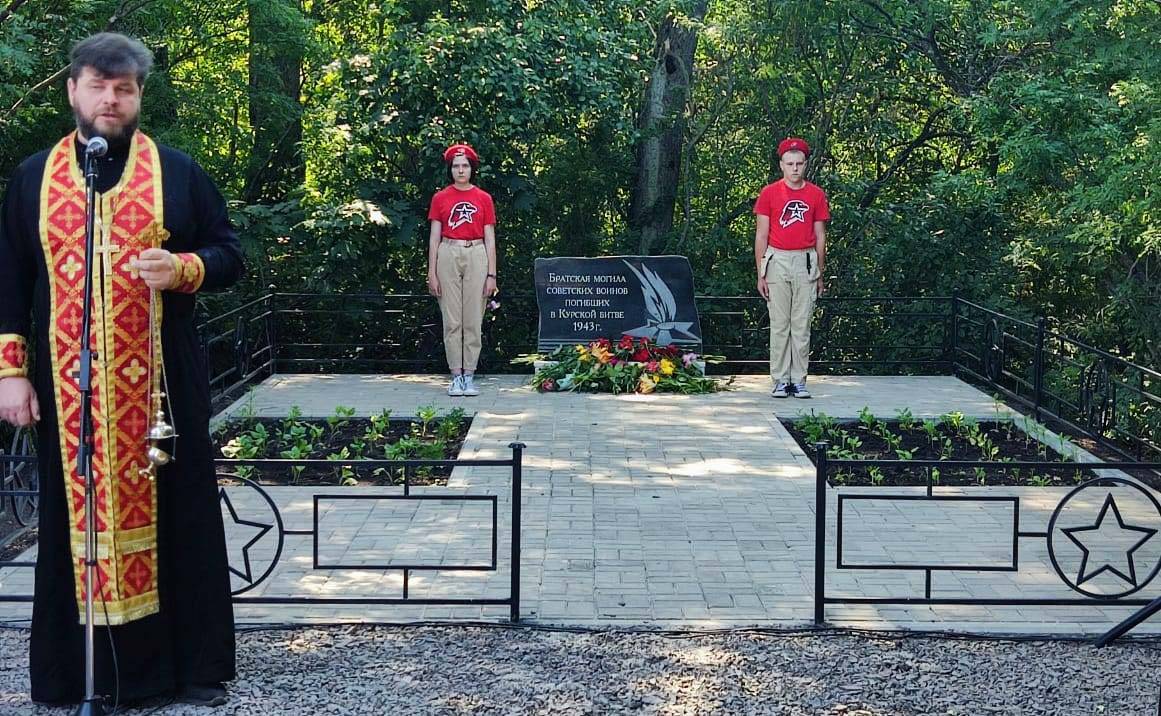 Настоятель Свято-Троицкого храма села 2-е Поныри, отец Владимир провел освящение братского захоронения и отслужил литию по погибшим воинам.