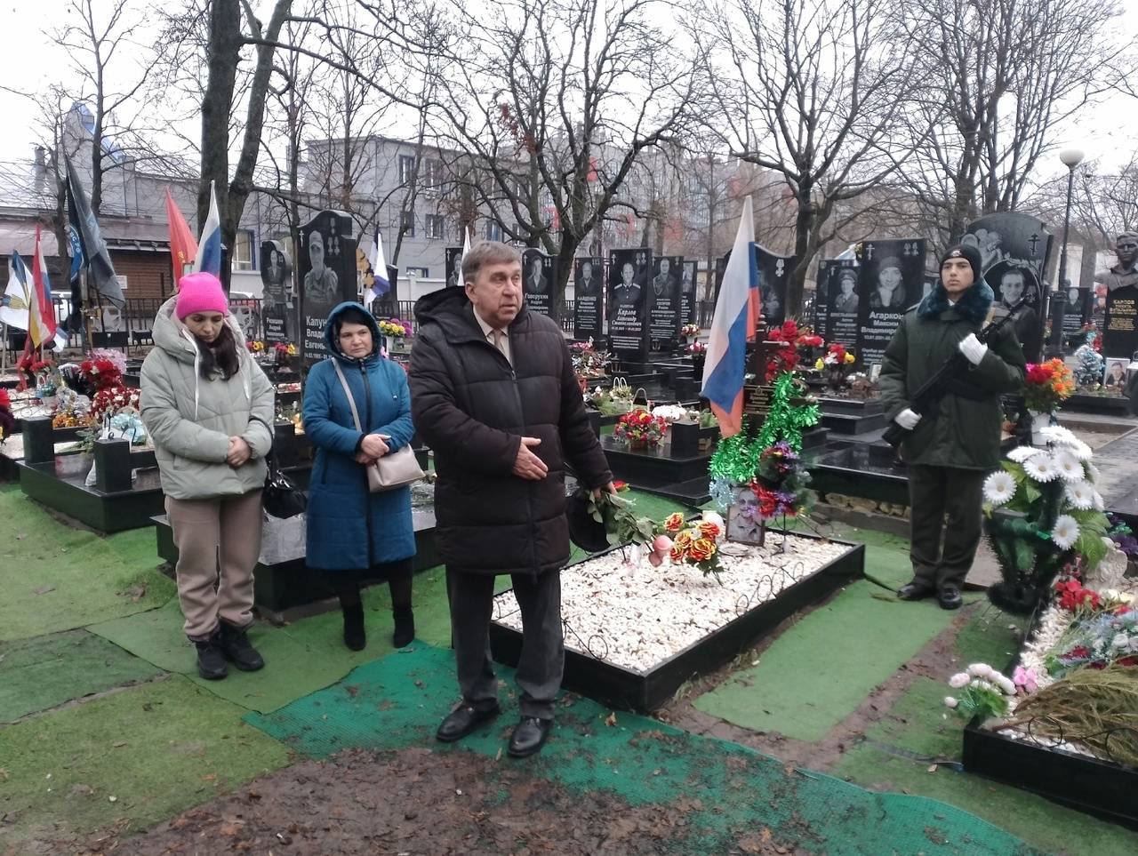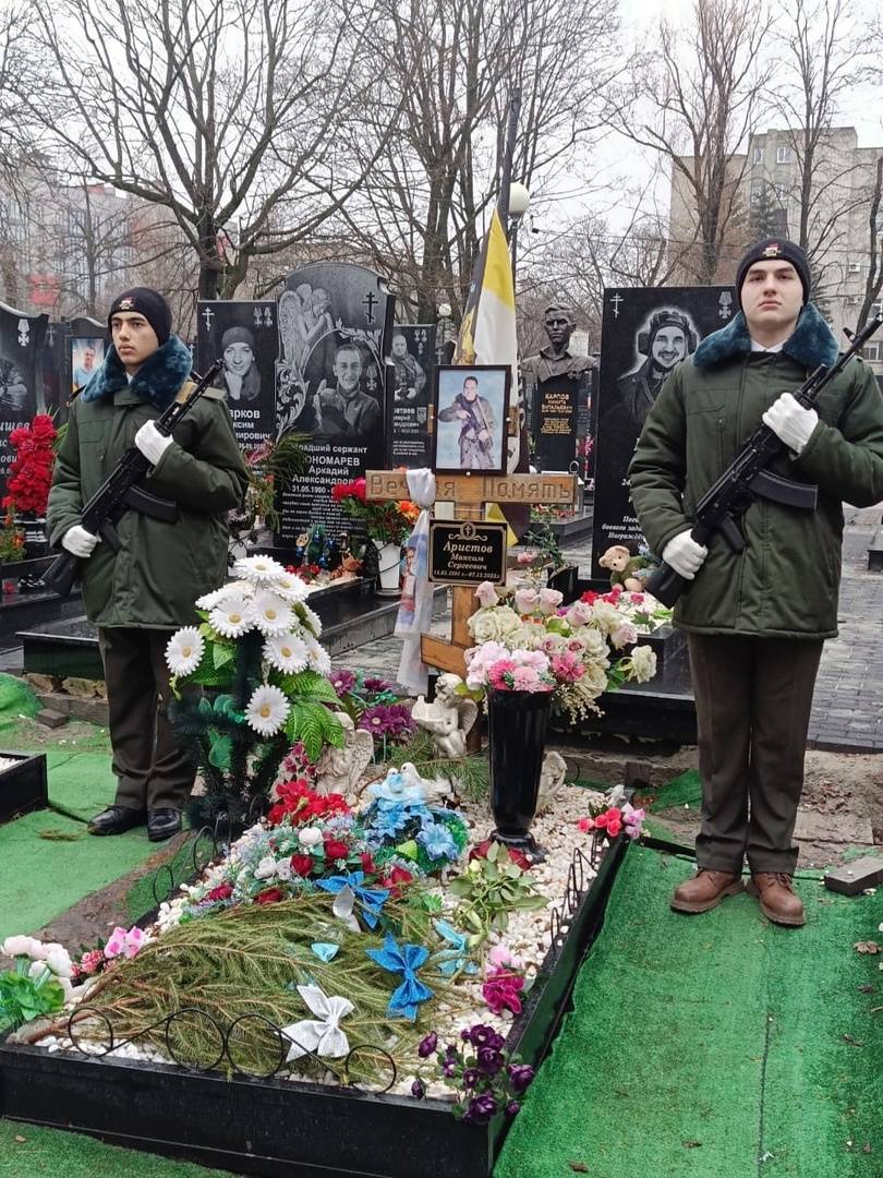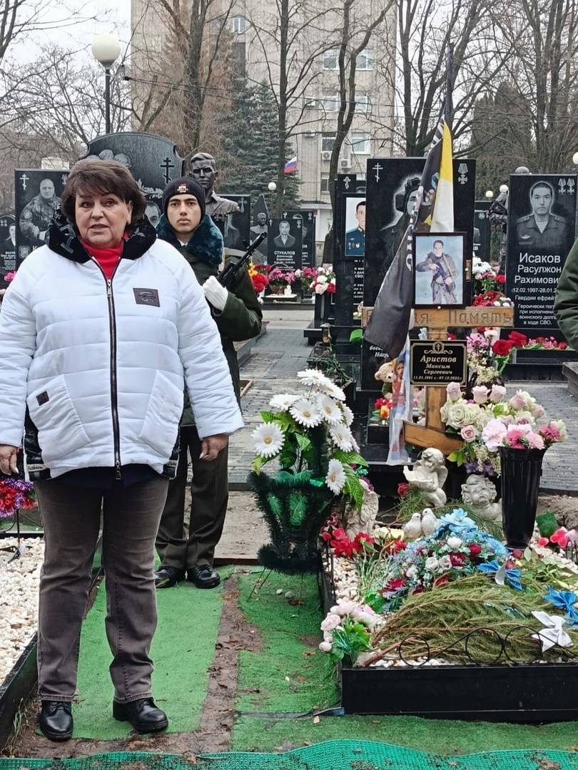 На митинге присутствовали родственники погибших участников СВО, крестная Максима Сергеевича Марина Геннадьевна и друг Андрей Михайлович, а также представители регионального отделения РВИО: педагог-организатор Дворца пионеров Владимир Быканов и преподаватель ЮЗГУ Павел Потапенко.