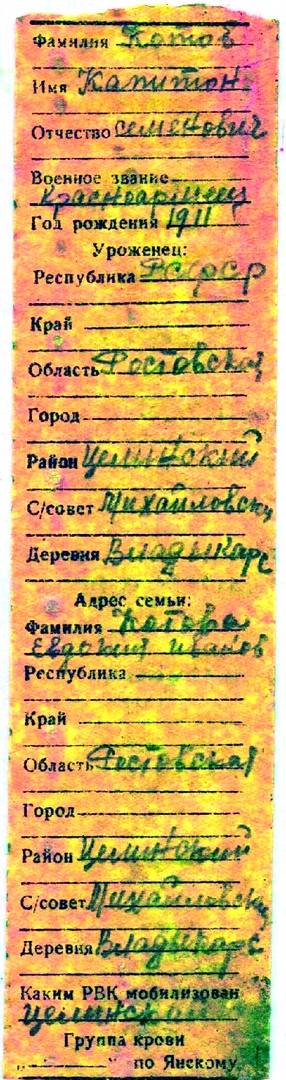 По результатам идентификации останков советских воинов, обнаруженных 14 сентября 2021 года в посёлке Горшечное Курской области поисковиками, удалось установить судьбу красноармейца Котова Капитона Семеновича, 1911 года рождения, уроженца Сальского района Ростовской области, числившегося пропавшим без вести и опознанного по солдатскому медальону специалистами лаборатории «Солдатский медальон» Московского городского поискового центра.