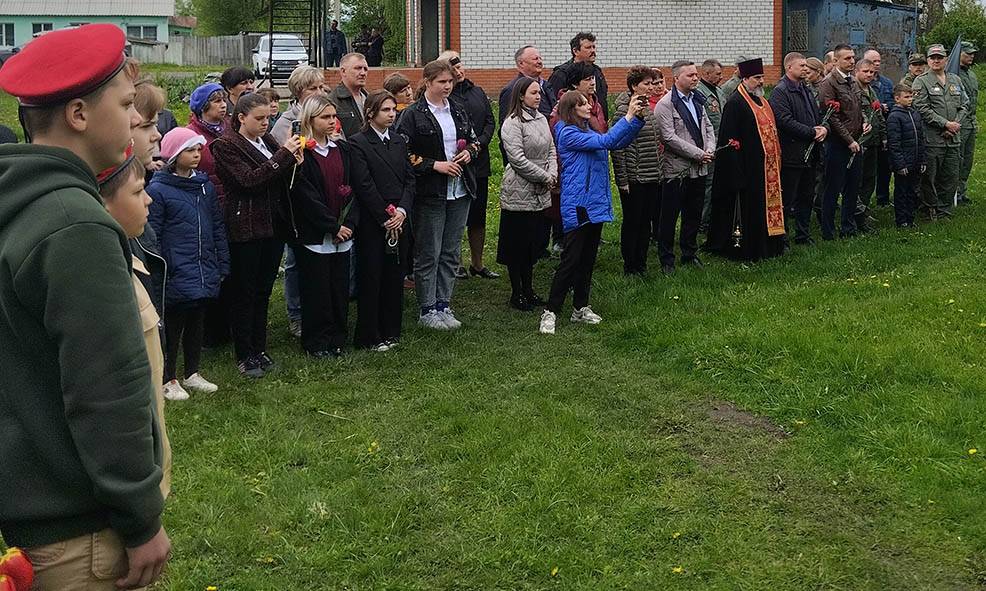 В церемонии приняли участие и выступили Глава Поныровского района Владимир Торубаров, заместитель министра внутренней и молодёжной политики Курской области Владимир Гребёнкин, глава Первомайского сельсовета Галина Анпилогова, командир отряда «Высота» Владимир Некрасов. Литию по павшим отслужил Благочинный Поныровского церковного округа протоиерей Владимир Машлякевич. Военнослужащие Курского гарнизона произвели воинский салют.