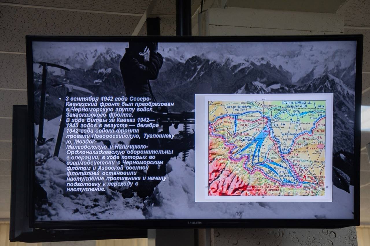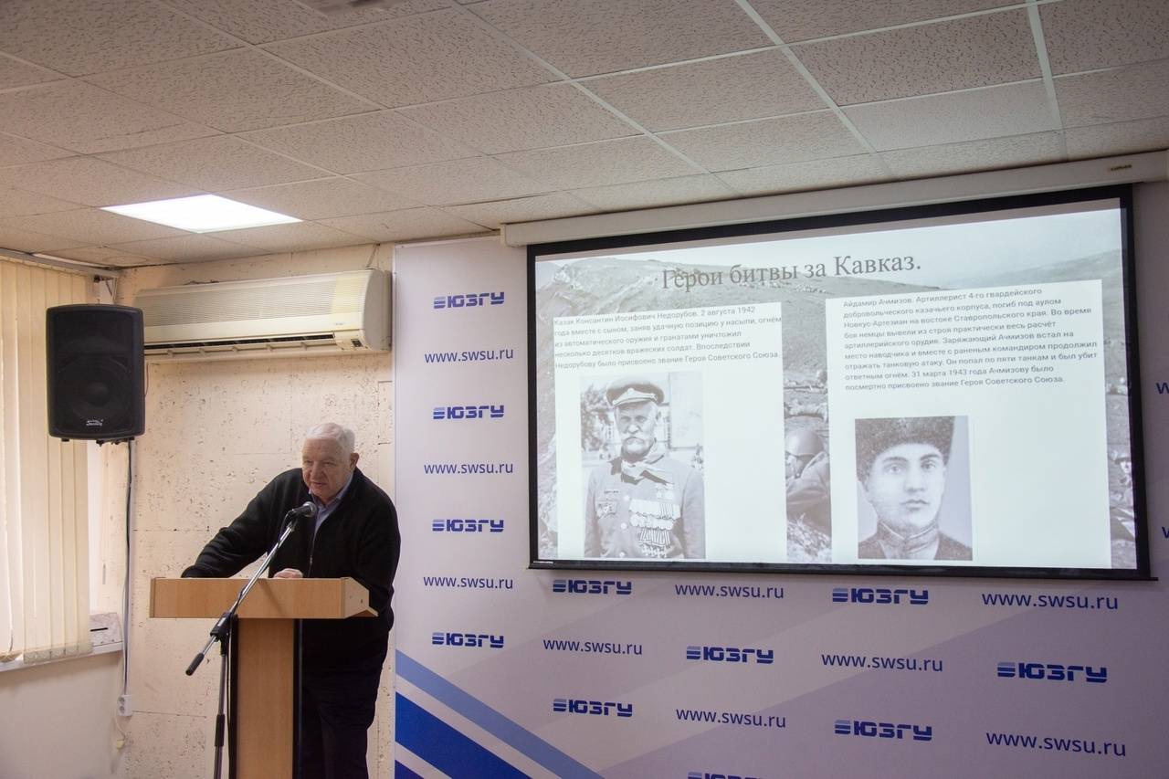 При поддержке регионального отделения Российского военно-исторического общества в ЮЗГУ прошло открытое занятие по «Основам российской государственности». Оно посвящалась Дню разгрома советскими войсками немецко-фашистских войск в битве за Кавказ в 1943 году.