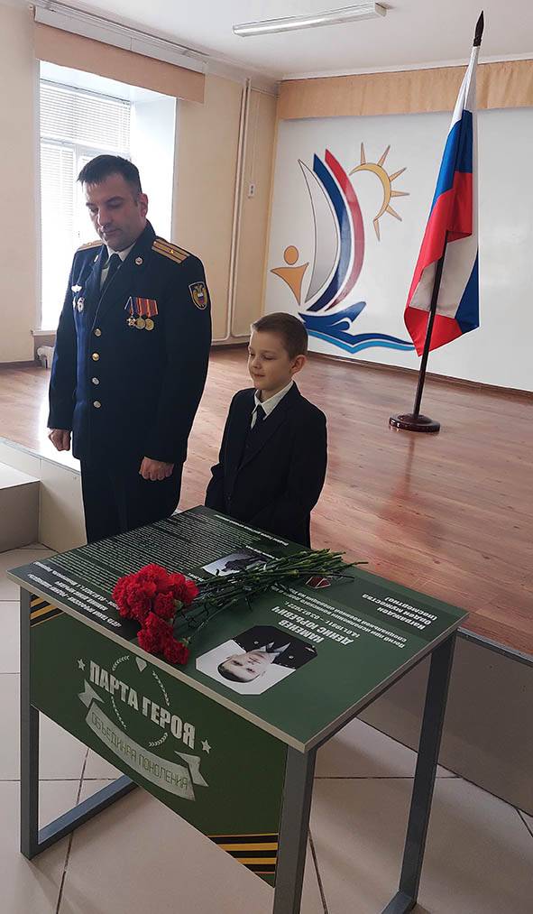 В торжественном открытии парты Героя приняли участие родственники Дениса Каменева, воспитанники интерната, представители органов власти и общественных организаций.