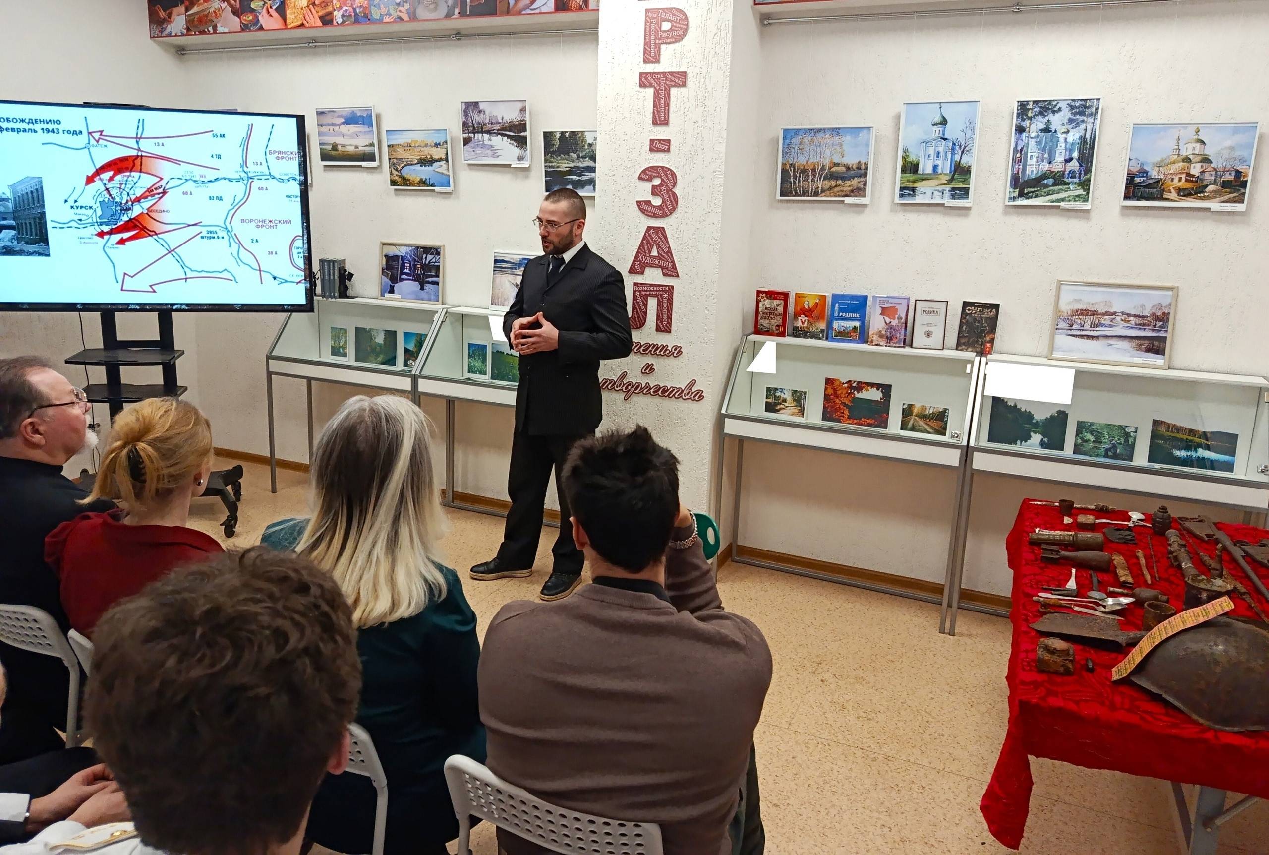 Алексей Юрьевич рассказал об освобождении города Курска в феврале 1943 г., героях освободителях, а также зимних наступательных операциях, результатом которых стало освобождение большей части Курской области.