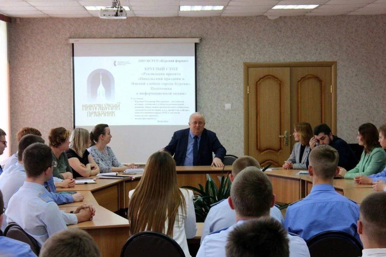После завершения работы дискуссионной площадки состоялся круглый стол с волонтерами проекта «Никольский праздник в Ямской слободе», в ходе которого Владимир Викторович поделился советами о распространении краеведческих знаний по истории Железнодорожного округа Курска среди школьников и жителей города.