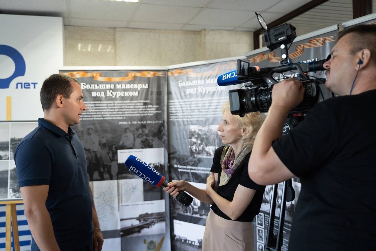 Экскурсию для первых зрителей провел председатель Совета регионального отделения РВИО в Курской области, профессор университета Владимир Коровин. Владимир Викторович много лет посвятил изучению этого грандиозного военно-исторического события, призванного продемонстрировать силу и мощь армии Российской империи начала ХХ века. Во время недавней командировки в Санкт-Петербург совместно с членом РВИО, директором музея ЮЗГУ Евгением Головиным ему удалось обнаружить в Центральном государственном архиве кинофотофонодокументов редкие снимки маневров. Часть из них и составили основу экспозиции.