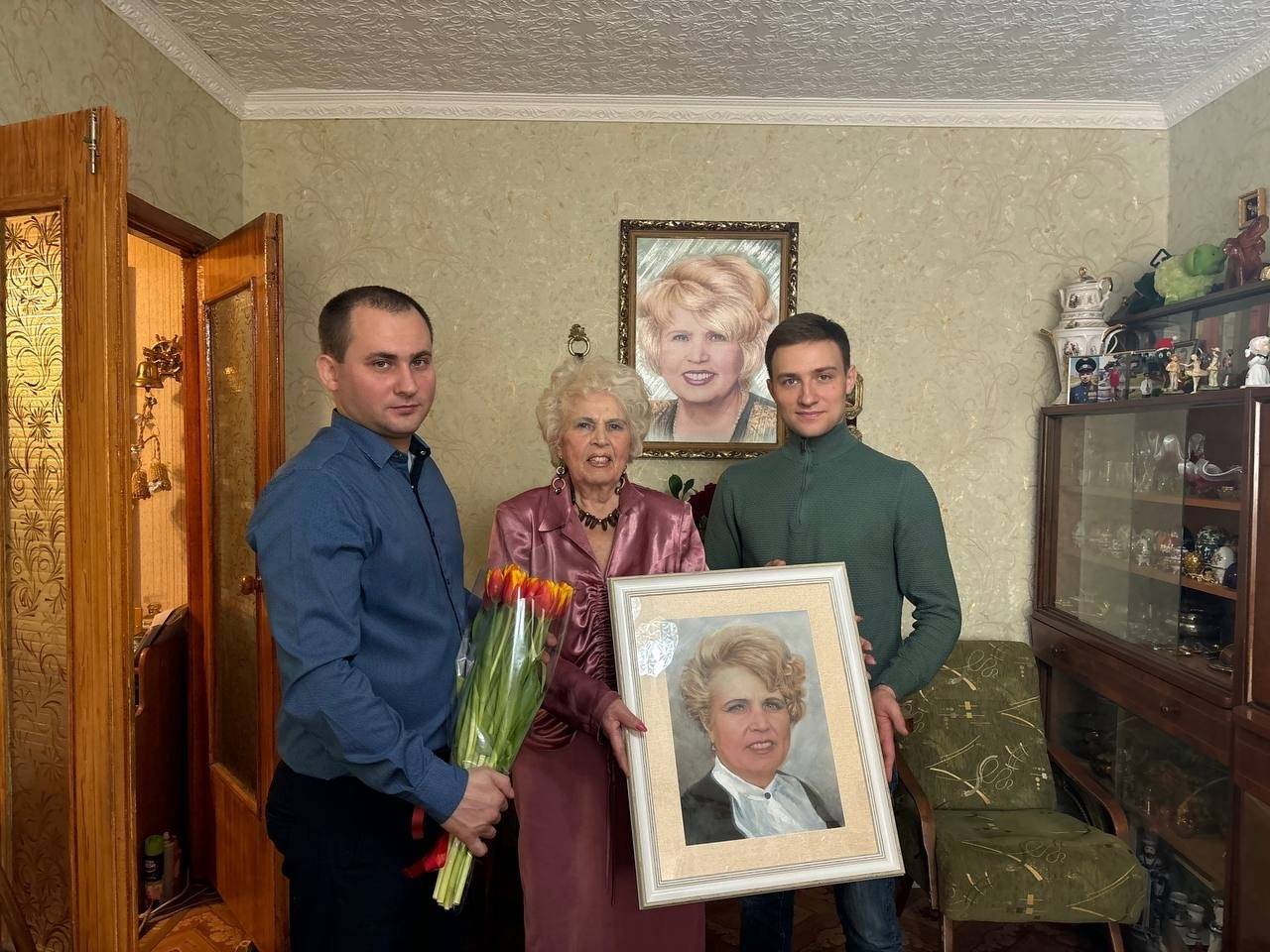 В преддверии 8 Марта Галину Павловну навестили директор музея ЮЗГУ Евгений Головин и преподаватель университета, руководитель студенческого патриотического клуба «Порубежник» Сергей Душкин. В подарок по случаю праздника они привезли портрет Галины Павловны, цветы и ароматный пирог.
