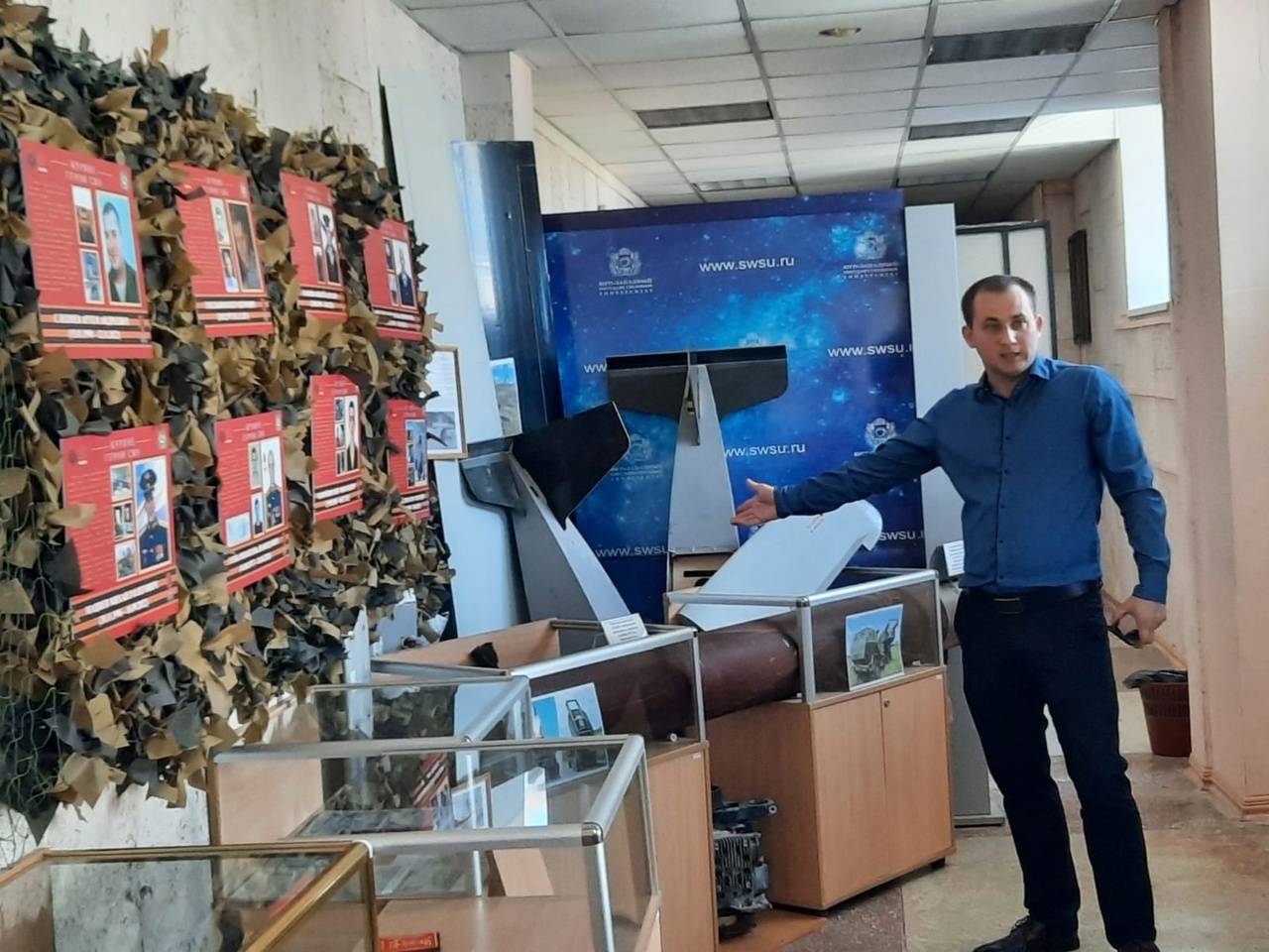 Член РВИО, директор музея ЮЗГУ, кандидат исторических наук Евгений Головин познакомил молодежь с экспозицией музея «Куряне – герои СВО».