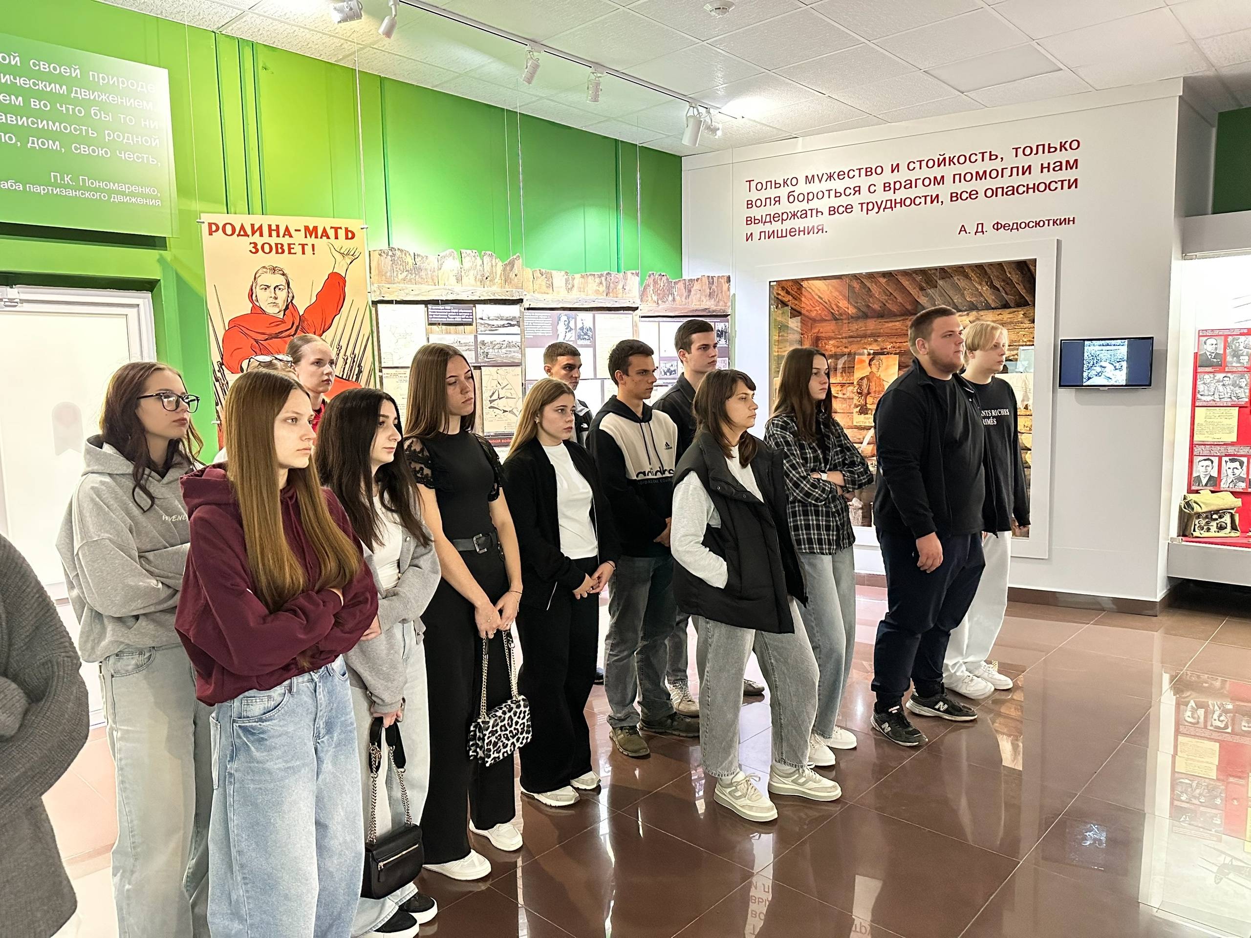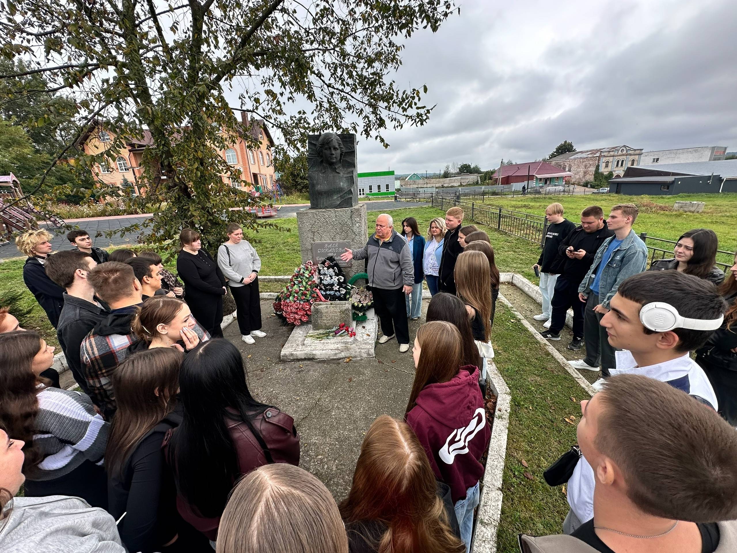 Первую остановку экскурсанты сделали у памятного знака на месте казни партизанской разведчицы Валентины Дикановой в слободе Михайловка. Далее по маршруту был единственный в Курской области музей партизанской славы «Большой Дуб», названный в честь одноимённого посёлка, который немцы сожгли дотла в 1942 году. О страшных событиях той осени ребятам рассказали научные сотрудники музея: Ольга Уханкина и председатель Железногорского местного отделения РВИО Анастасия Мальцева.