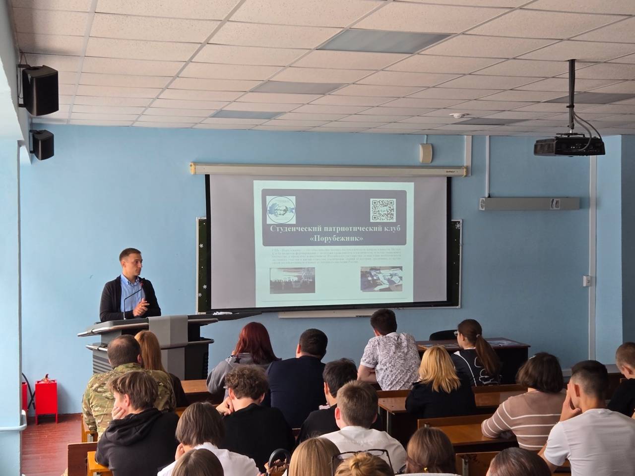Студенты узнали о деятельности патриотического клуба «Порубежник», функционал которого не ограничивается плетением маскировочных сетей, уборкой территорий мемориальных объектов. Благодаря деятельности объединения были созданы документальные фильмы, а также сборники о бойцах СВО.