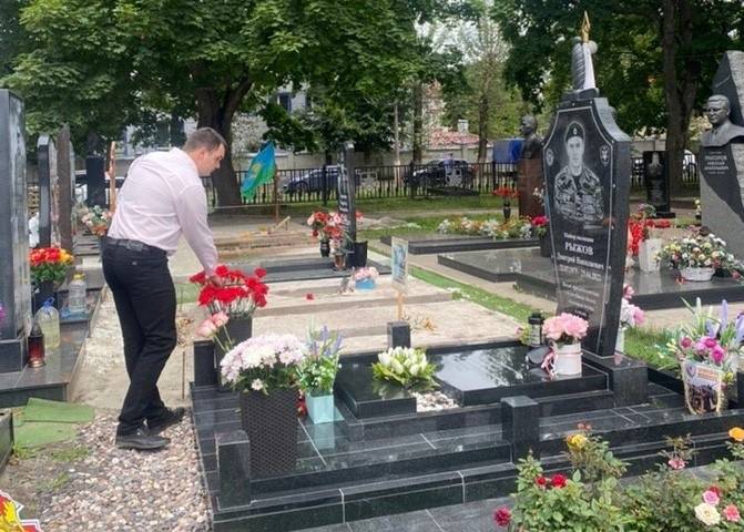 От имени регионального отделения РВИО В.П. Быканов передал книги родственникам и сослуживцам героя. У места его захоронения была отслужена лития, после которой собравшиеся возложили цветы к памятнику на могиле Д.Н. Рыжова.