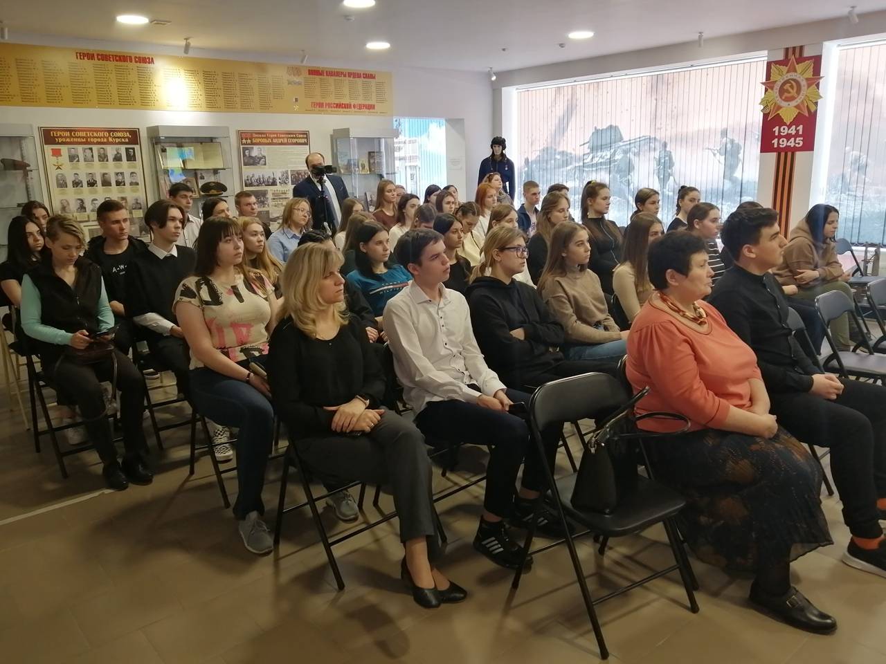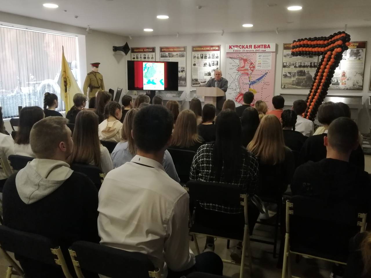 15 апреля 2022 года в выставочном центре «Курск – Город воинской славы» состоялась публичная лекция председателя Совета регионального отделения РВИО В.В. Коровина «Россия и Украина в параллелях истории». Слушателями стали более 50 студентов Финансового университета и Медико-фармацевтического колледжа, учащихся лицея № 6 и школы № 9 города Курска, работников образования и культуры.