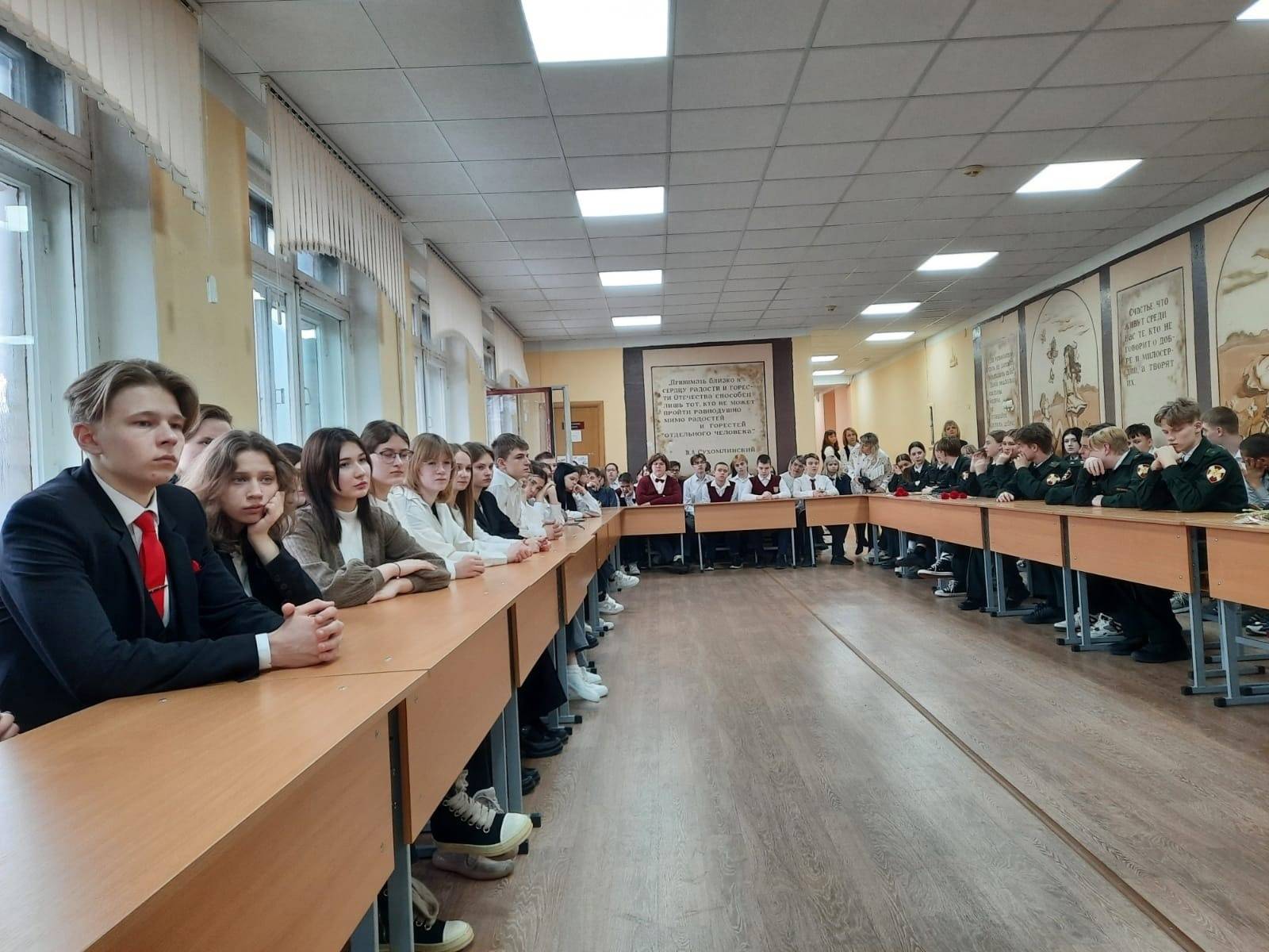 В ходе работы круглого стола учащиеся школы смогли задать вопросы гостям мероприятия: ветеранам Вооруженных сил, воинам-интернационалистам, выпускникам школы полковнику в отставке А.М. Громыко и подполковнику в отставке П.М. Верютину, председателю Совета РО РВИО в Курской области профессору ЮЗГУ В.В. Коровину, заместителю председателя Совета РО РВИО А.Н. Манжосову, а также заместителю главы Железнодорожного округа города Курска А.М. Филатову. Участниками встречи стали и студенты ЮЗГУ, члены РО РВИО, активисты студенческого патриотического клуба«Порубежник» Сергей Душкин и Павел Потапенко. По завершении круглого стола учащиеся школы и почётные гости вместе с главой Железнодорожного округа Александром Дрыновым возложили цветы, к памятному знаку выпускникам школы, погибшим при исполнении воинского долга.