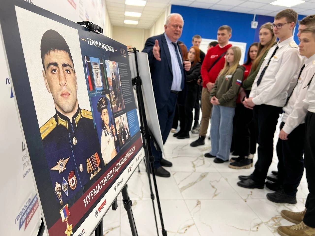 Историк рассказал ребятам, как освобождали город, какие споры есть по сей день и многое другое. Участники встречи также ознакомились с фотовыставкой Российского военно-исторического общества «Герои и подвиги» о современных героях – участниках Специальной военной операции.