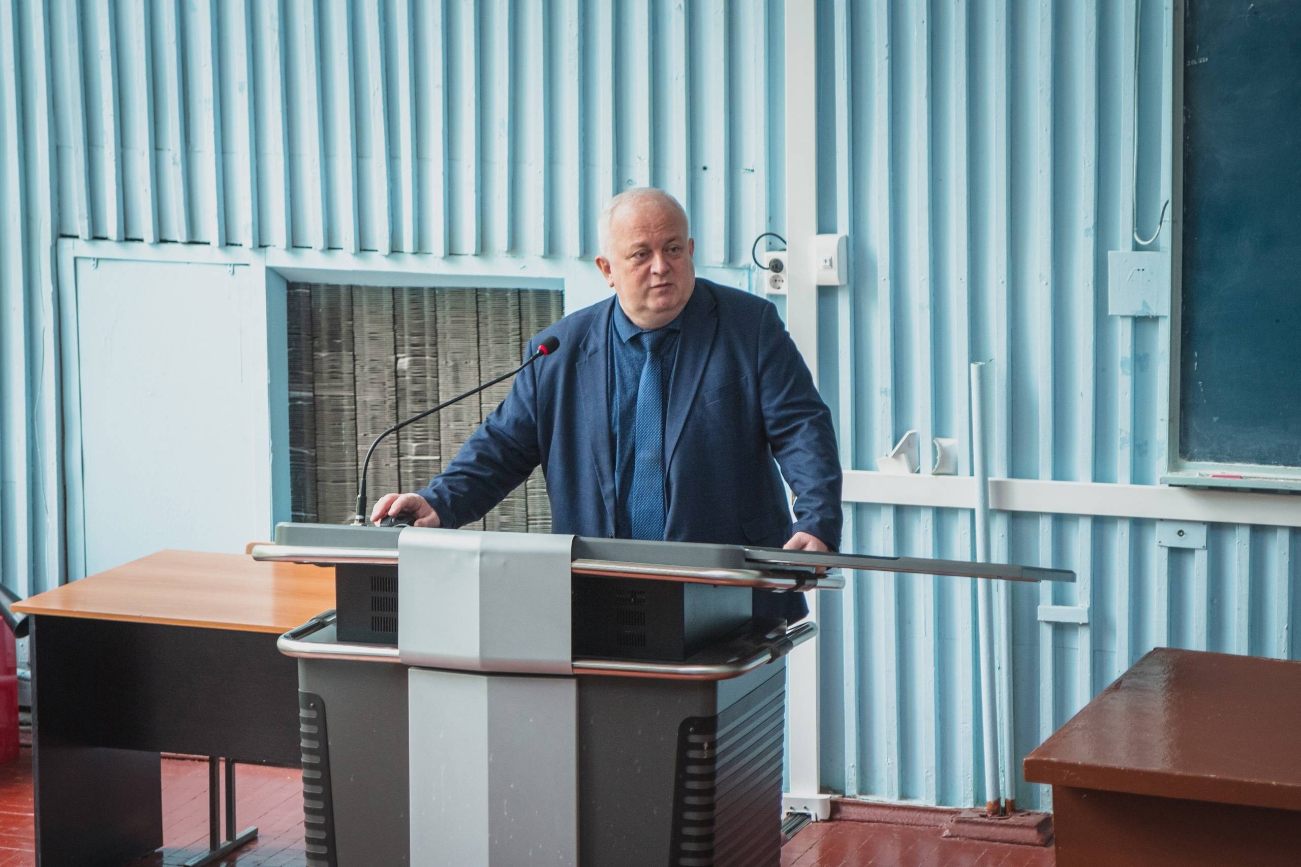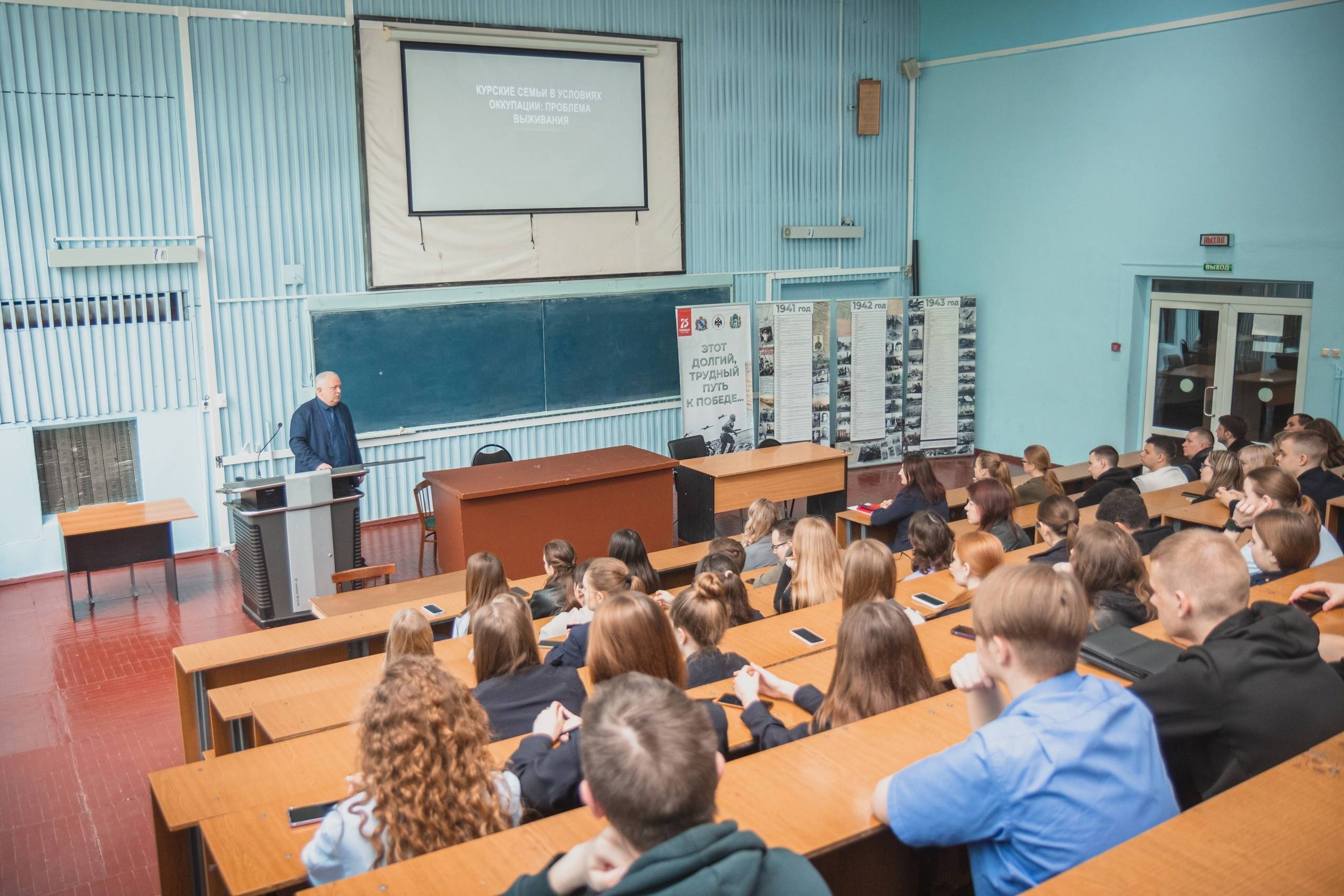 На мероприятии перед студентами выступил профессор ЮЗГУ, председатель Совета регионального отделения РВИО Владимир Коровин.