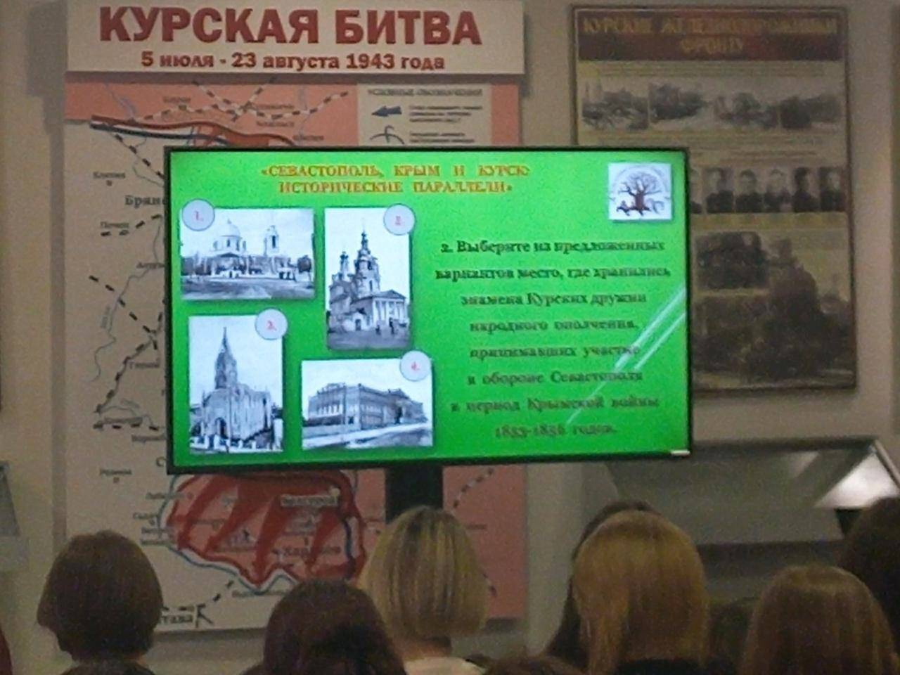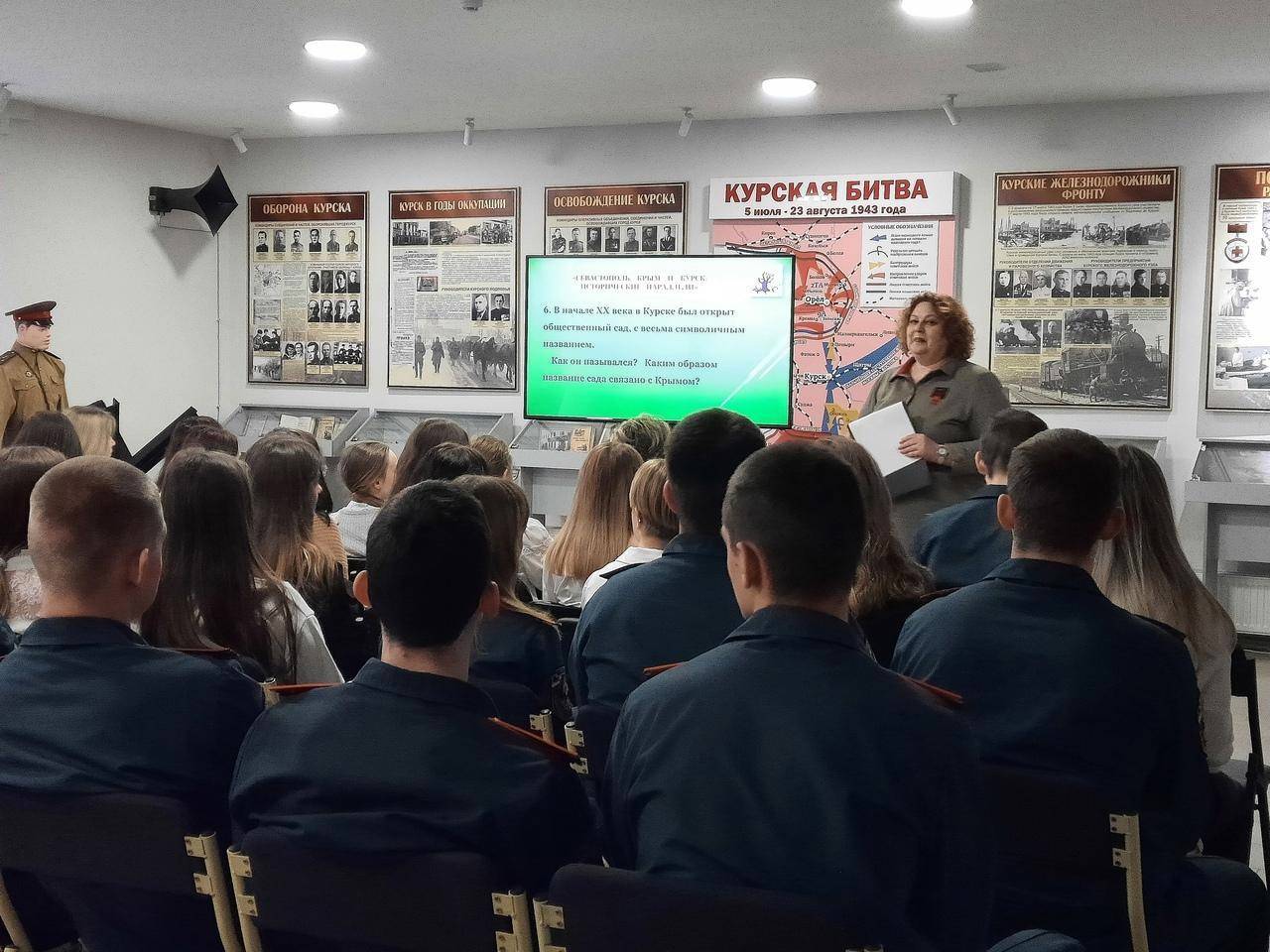17 марта 2023 года, накануне Дня воссоединения Крыма с Россией в выставочном центре «Курск – Город воинской славы» состоялась краеведческая викторина «Севастополь, Крым и Курск: исторические параллели».