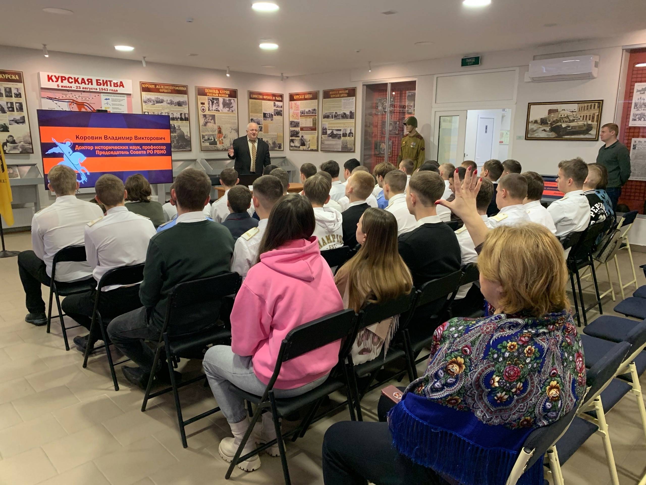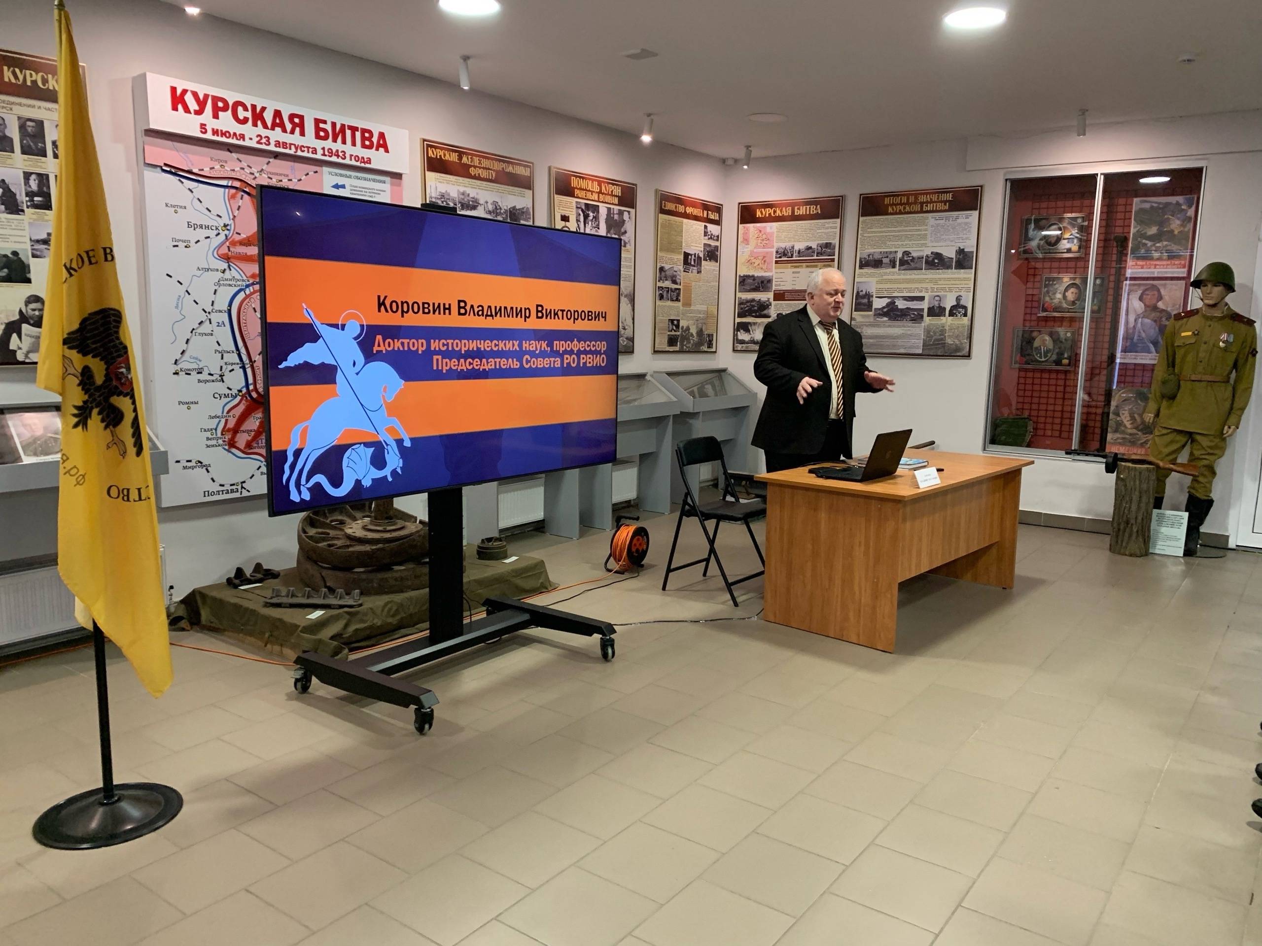 9 декабря в выставочном центре «Курск - Город воинской славы» прошло мероприятие «Встреча с историей / встреча с историком». Специальным гостем стал Владимир Коровин – председатель Совета регионального отделения военно-исторического общества в Курской области, профессор ЮЗГУ, доктор исторических наук.