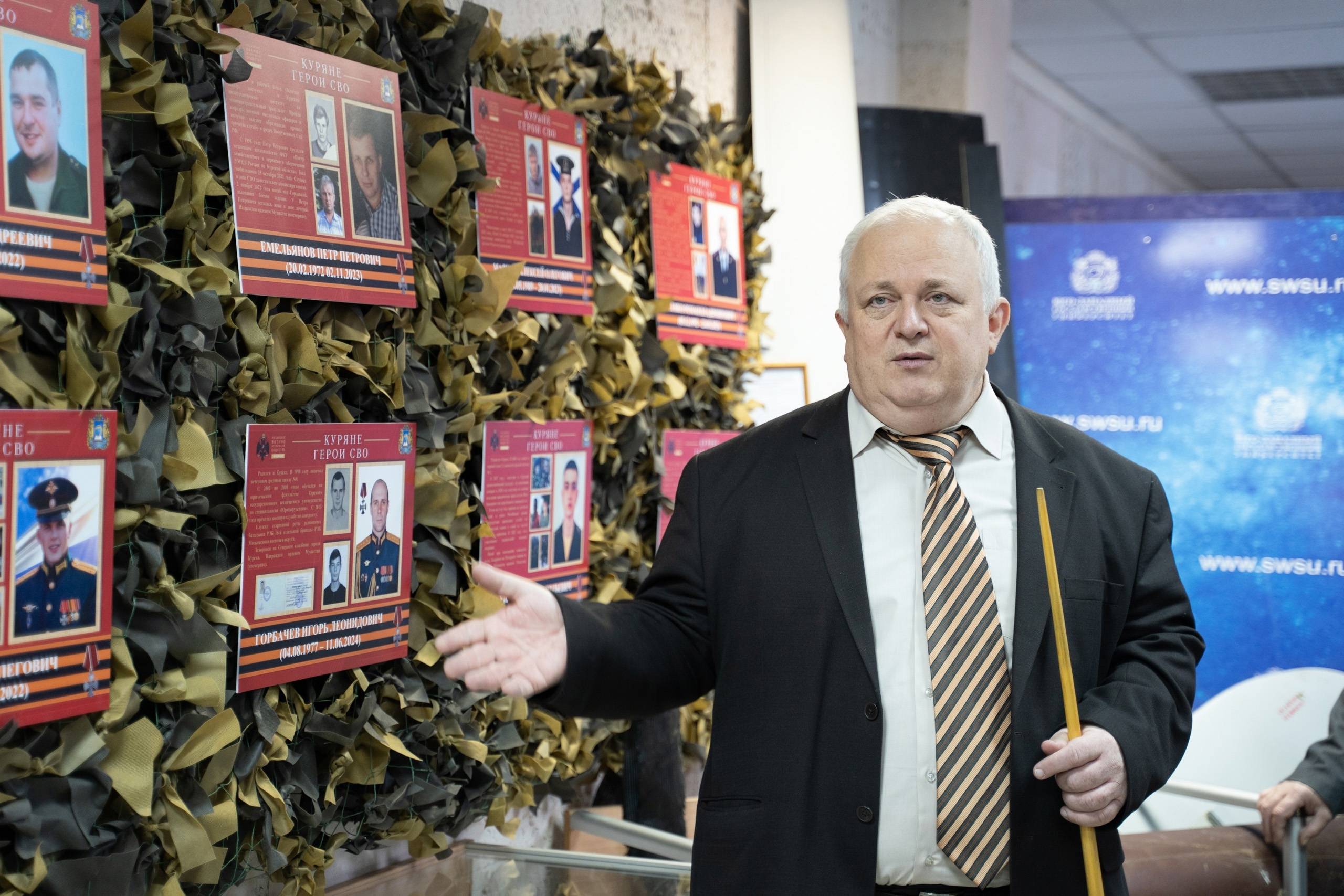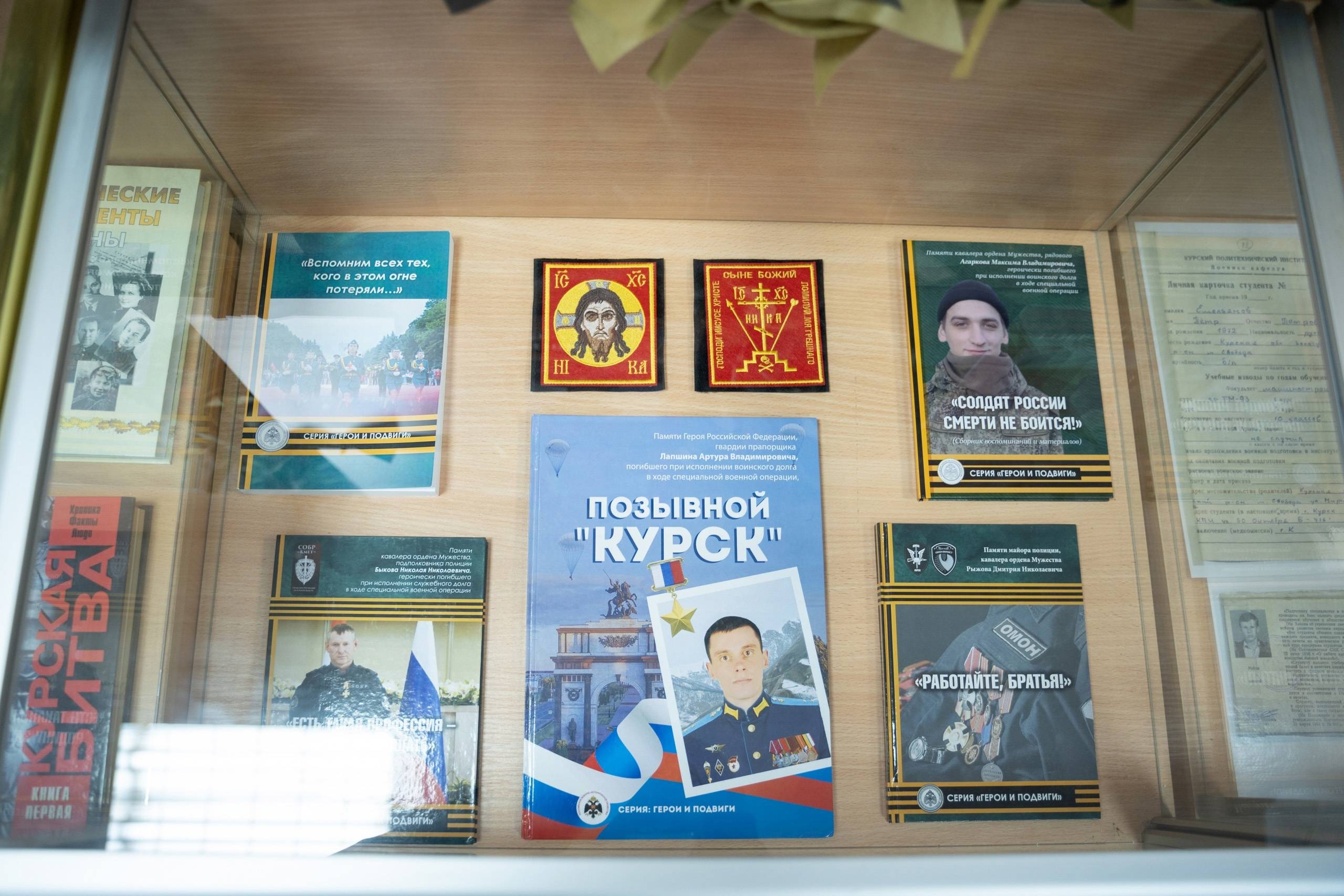 Музейную экспозицию создали при поддержке регионального отделения Российского военно-исторического общества в Курской области в память о студентах и выпускниках вуза, погибших в ходе СВО. На открытии выступили члены РВИО: председатель Совета РО РВИО, профессор университета Владимир Коровин, подполковник милиции в отставке, ветеран боевых действий Владимир Быканов, а также преподаватели юридического факультета Сергей Душкин и Павел Потапенко.
