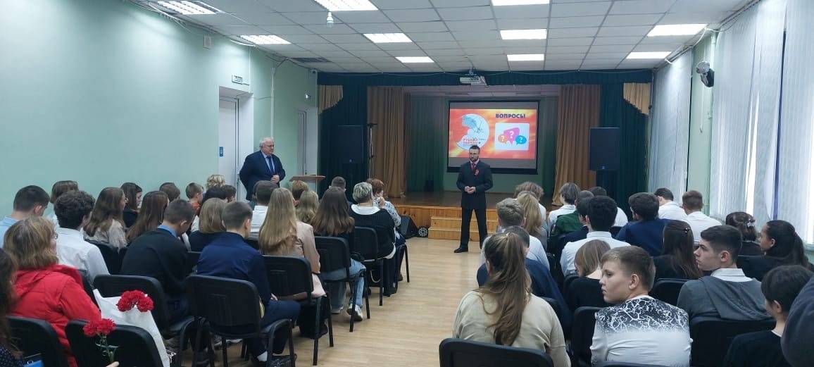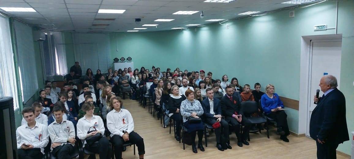 Перед кинопоказом состоялась творческая встреча с одним из создателей фильма – председателем Совета регионального отделения РВИО, профессором Владимиром Коровиным. Он рассказал об идее съемок и особенностях реализации, об исследовательской работе до написания сценария и роли военно-исторических реконструкторов в воссоздании событий осени 1941 года. После сеанса ребята задавали вопросы Владимиру Викторовичу и участнику съемок, члену РВИО, кандидату исторических наук Алексею Золотухину.