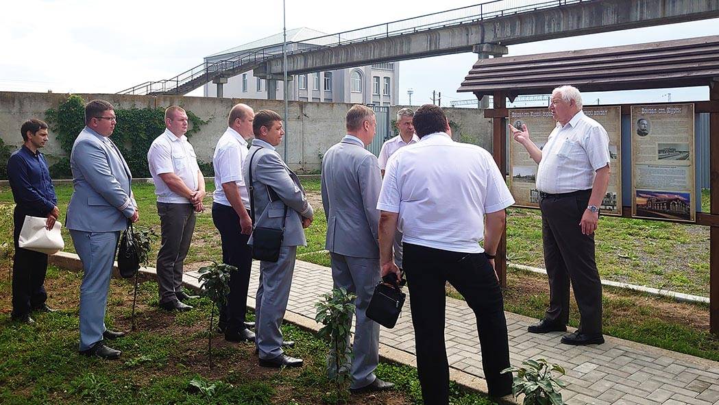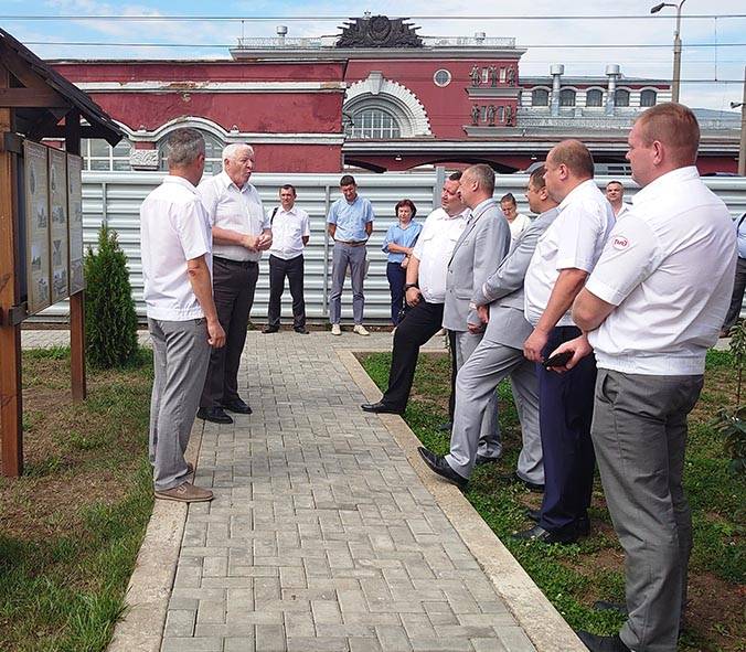 В церемонии открытия приняли участие работники дистанции и их гости – дважды почетный железнодорожник, почетный работник Московской железной дороги, ветеран ж.д. транспорта Александр Николаевич Беспалов и почетный железнодорожник, почетный работник Московской ж.д., кандидат исторических наук, председатель Совета ветеранов Железнодорожного округа Курска, член Совета регионального отделения РВИО, научный консультант проекта Александр Николаевич Манжосов.