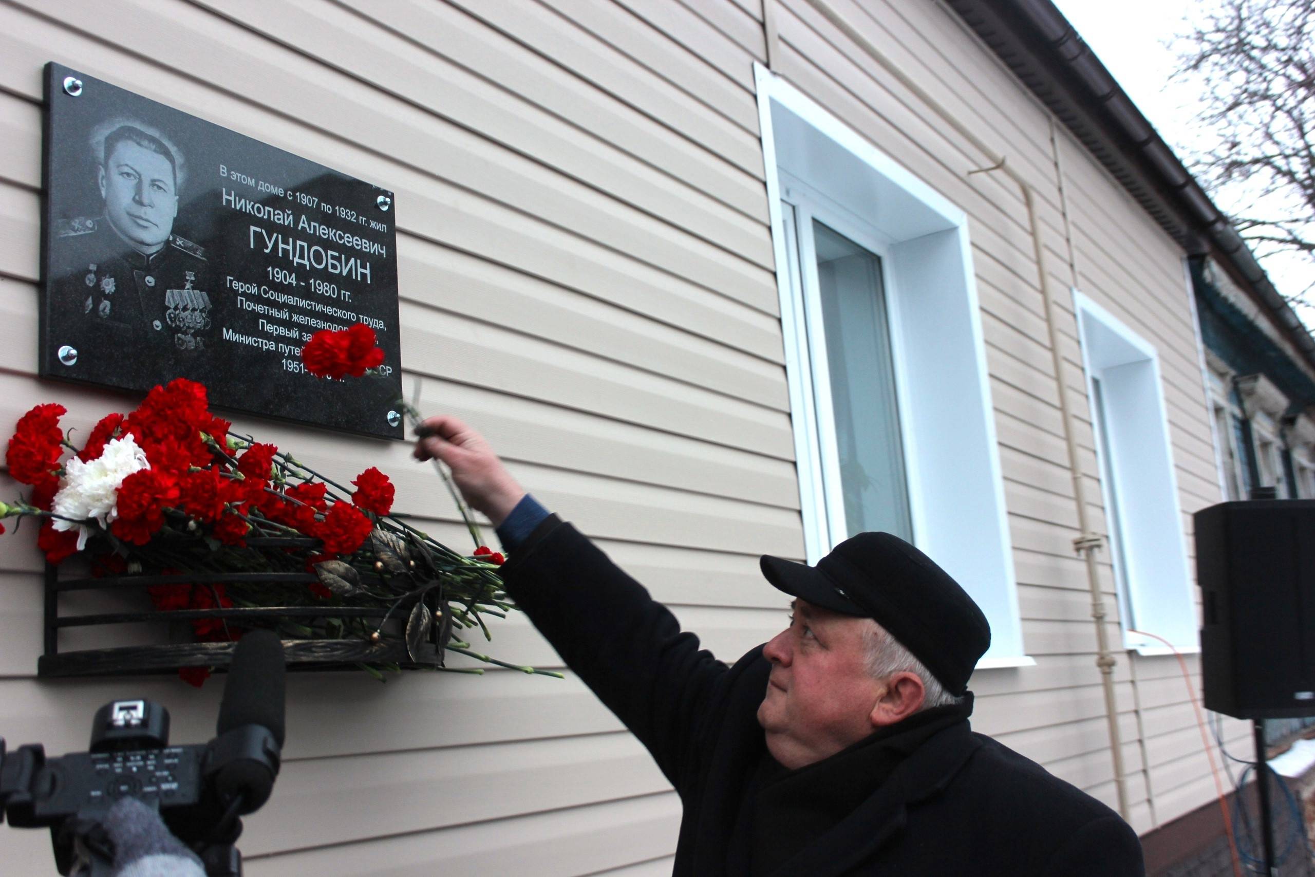 Николай Алексеевич Гундобин – уроженец города Курска, Герой Социалистического Труда, Почетный железнодорожник СССР. Открытие мемориального объекта приурочено к его 120-летию. С инициативой установки новой доски с уточненной информацией и портретом нашего знаменитого земляка на фасаде дома, где он родился и вырос, выступил Александр Манжосов – представитель регионального отделения РВИО, известный историк железнодорожного транспорта.