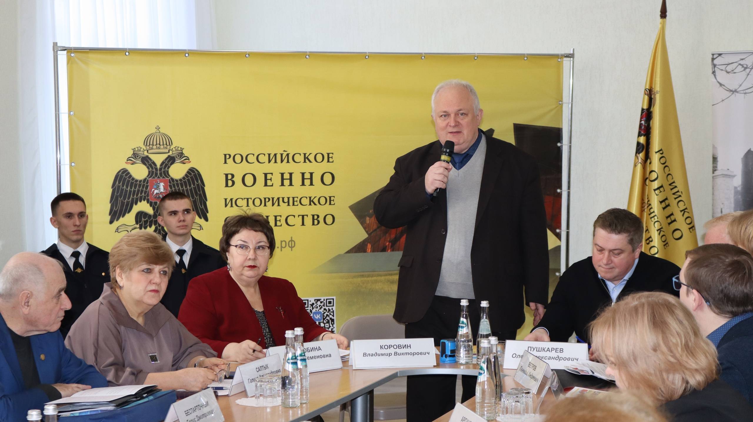 Участников приветствовали председатель регионального отделения РВИО, генеральный директор областного краеведческого музея Олег Пушкарев и председатель Областного совета ветеранов Геннадий Ветров. Модератором круглого стола стал председатель Совета РО РВИО, профессор ЮЗГУ Владимир Коровин. Владимир Викторович выступил с кратким обзором историографии участия молодых курян в Великой Отечественной войне.