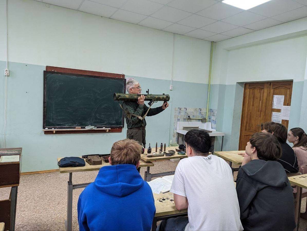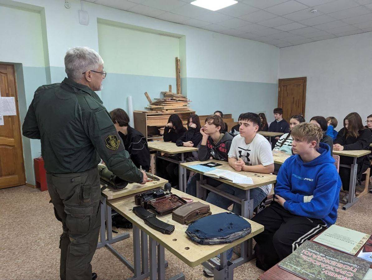 Виктор Иванович рассказал ребятам об условиях нахождения военнослужащих. Он показал экспонаты с территории Донбасса и предметы, которые используют наши бойцы. Школьники узнали о важности оказания доврачебной самопомощи, а также о том, как происходит эвакуация с мест.