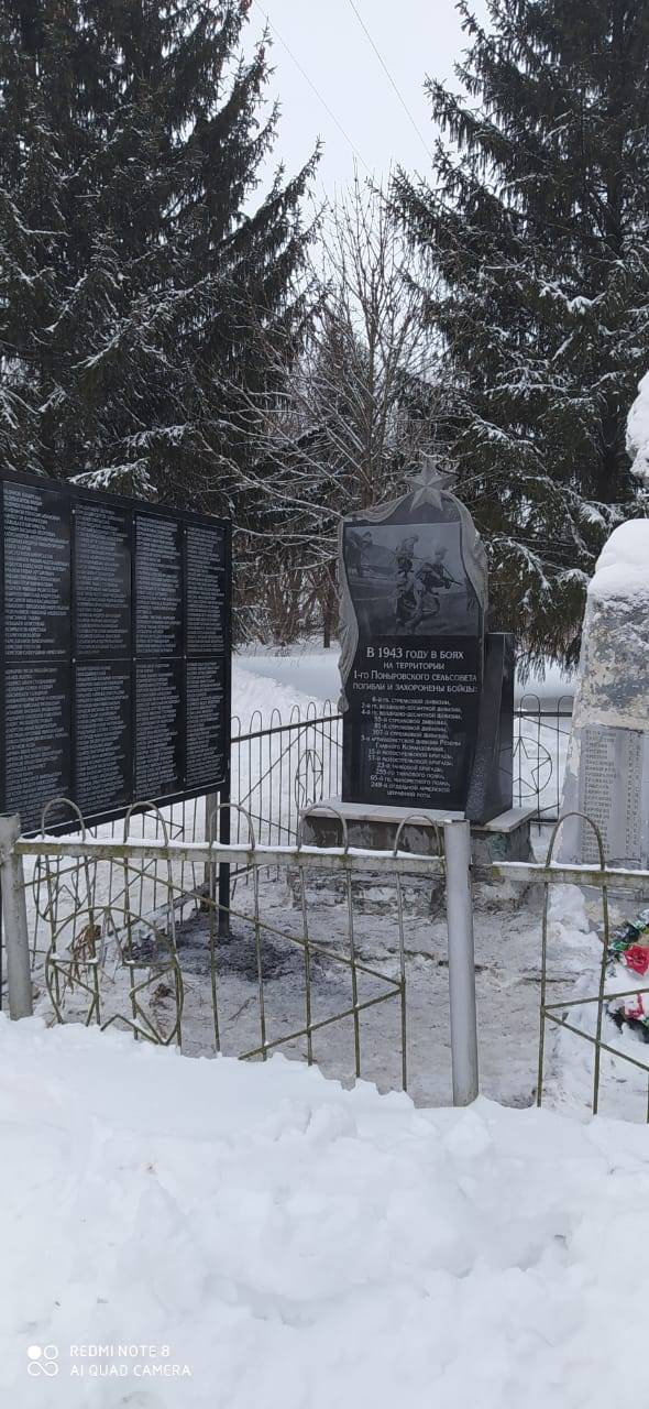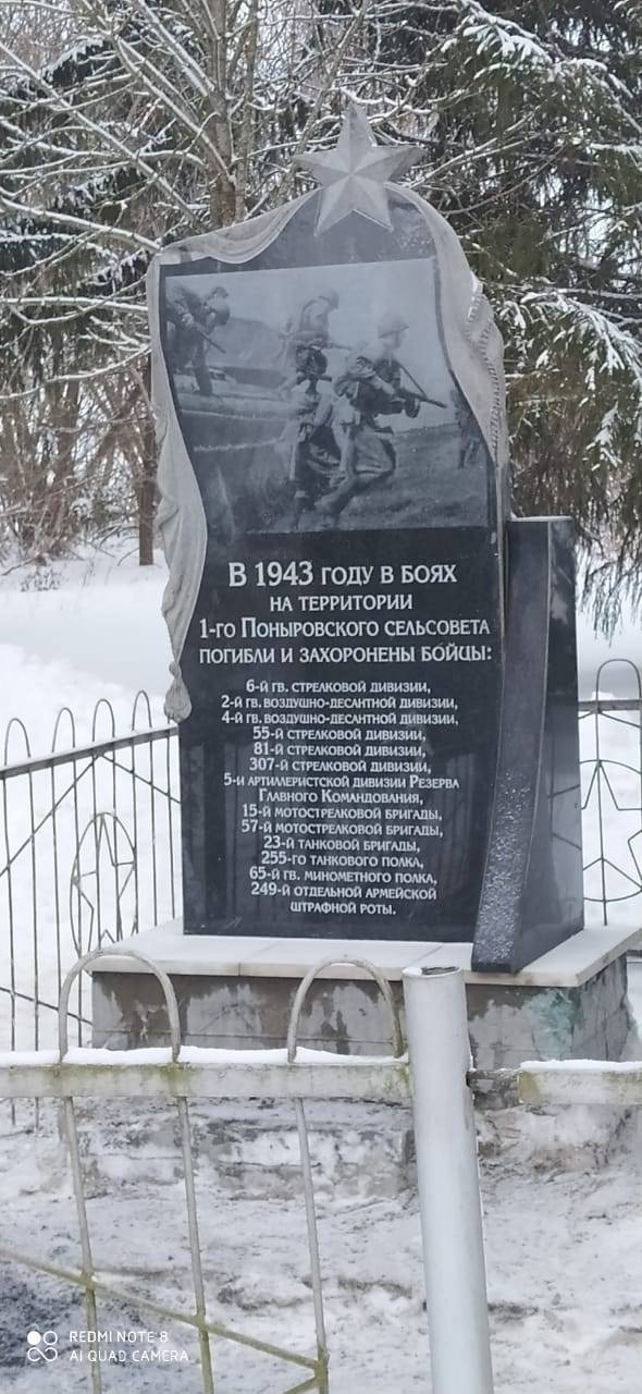 Членами регионального отделения Евгением Бутенко (учитель МОКУ «Коммунарская средняя общеобразовательная школа» Медвенского района) и Игорем Цукановым (руководитель областного Центра «Поиск») подготовлены списки и за счет благотворительной помощи Юлии Егоровой (г. Химки) изготовлены и установлены 17 новых гранитных плит с именами, фамилиями и отчествами 435 советских солдат (ранее здесь было увековечено 188 имен), погибших в 1943 году, в селе 1-е Поныри (ул. Елисеевка) Поныровского района.