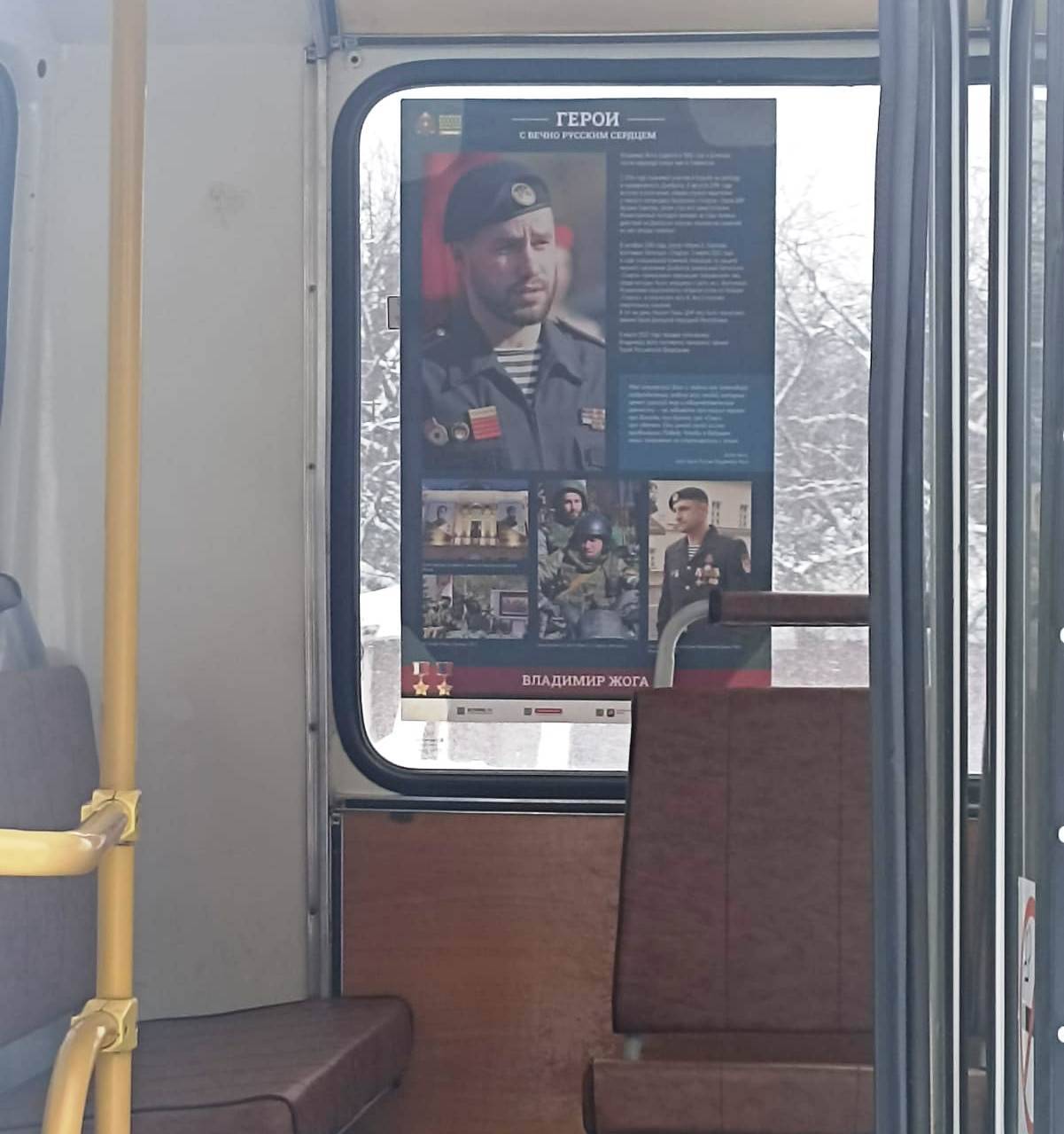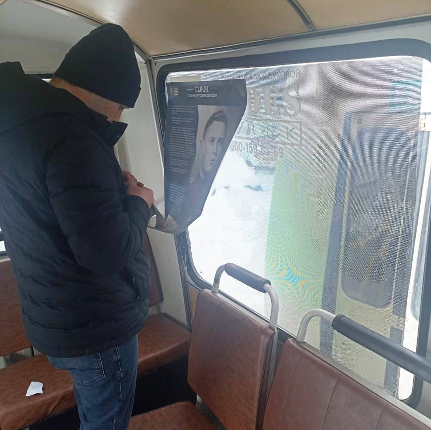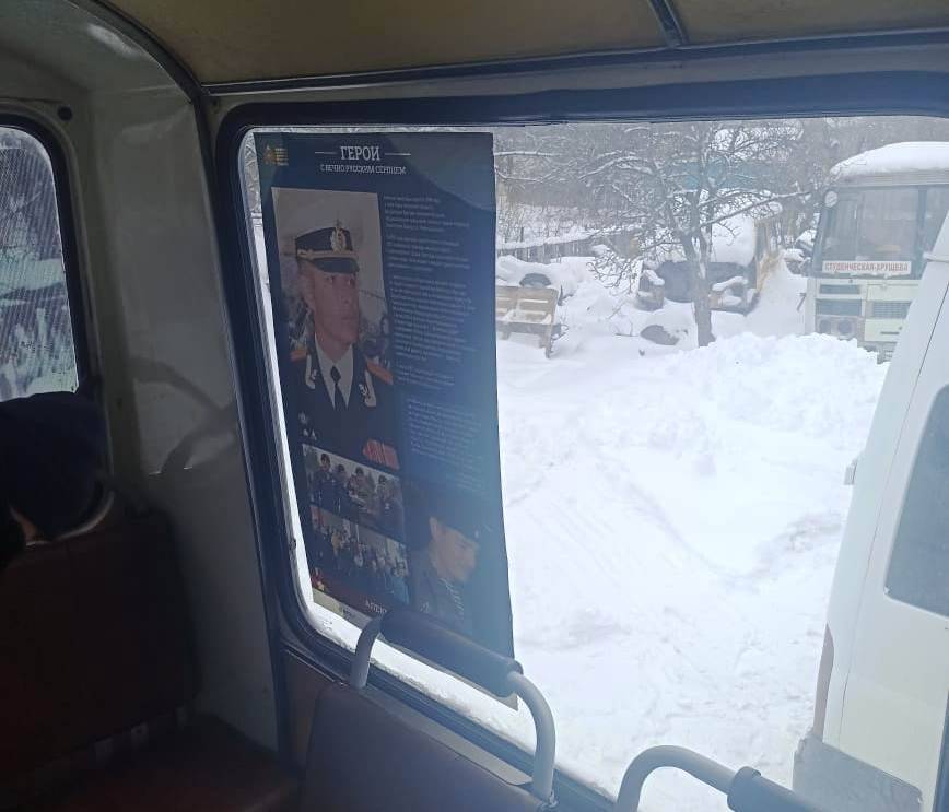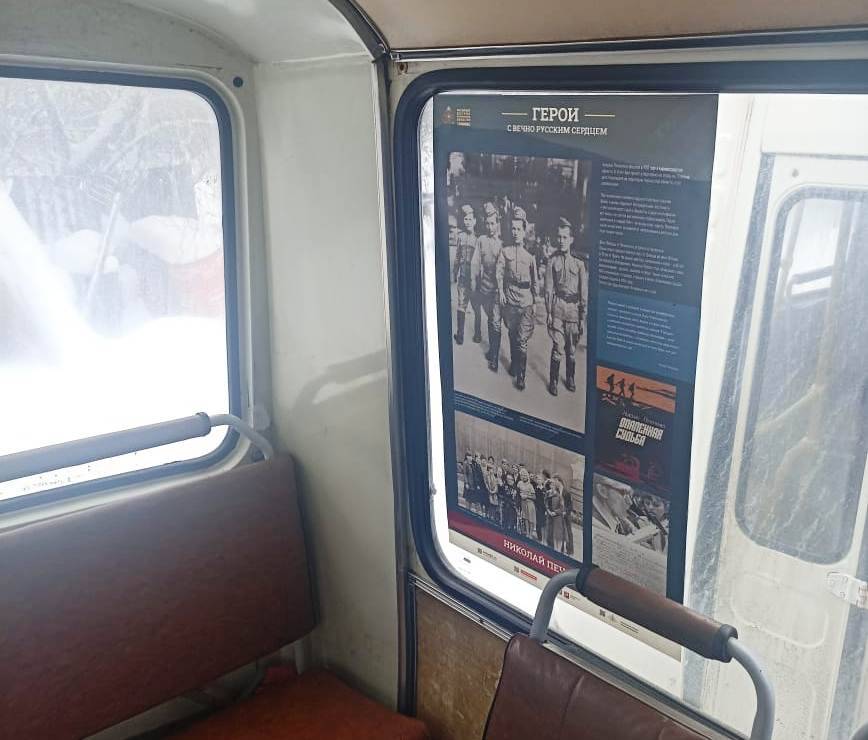С 21 февраля 2023 года по согласованию с Министерством транспорта и автомобильных дорог Курской области в салонах нескольких единиц городского пассажирского автотранспорта размещены плакаты документальной выставки «Герои с вечно русским сердцем», подготовленной Российским военно-историческим обществом. Пять плакатов посвящены подвигам героев Великой Отечественной войны и пять плакатов – героям специальной военной операции. Цветные плакаты содержат фотографии и описания подвигов героев.
