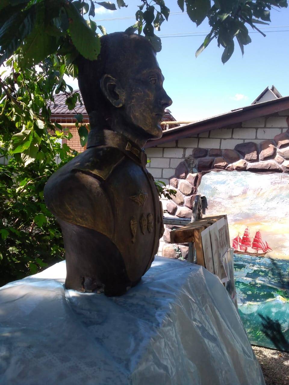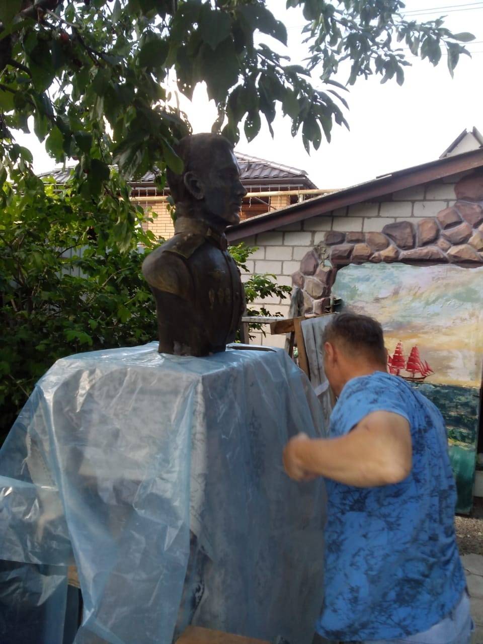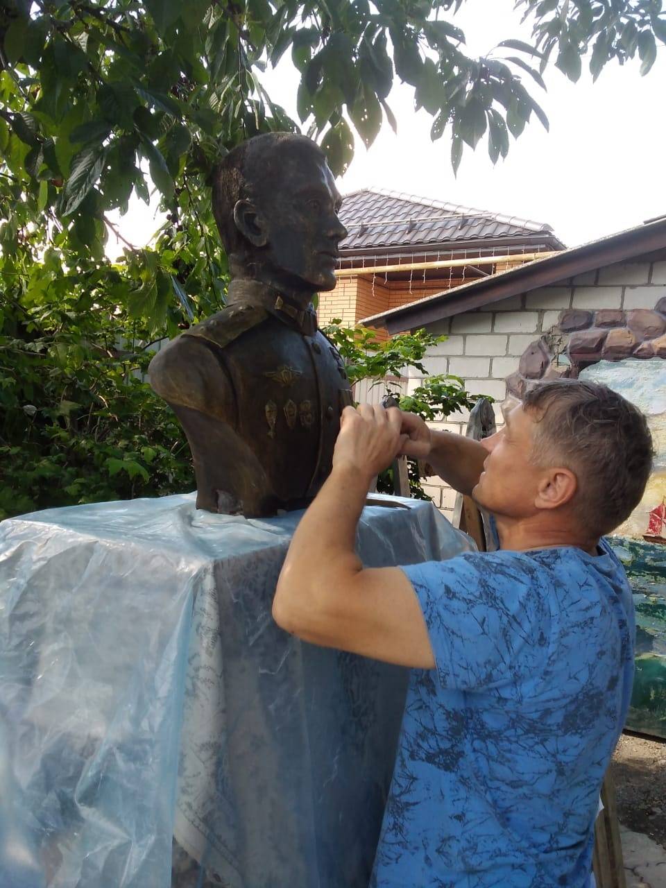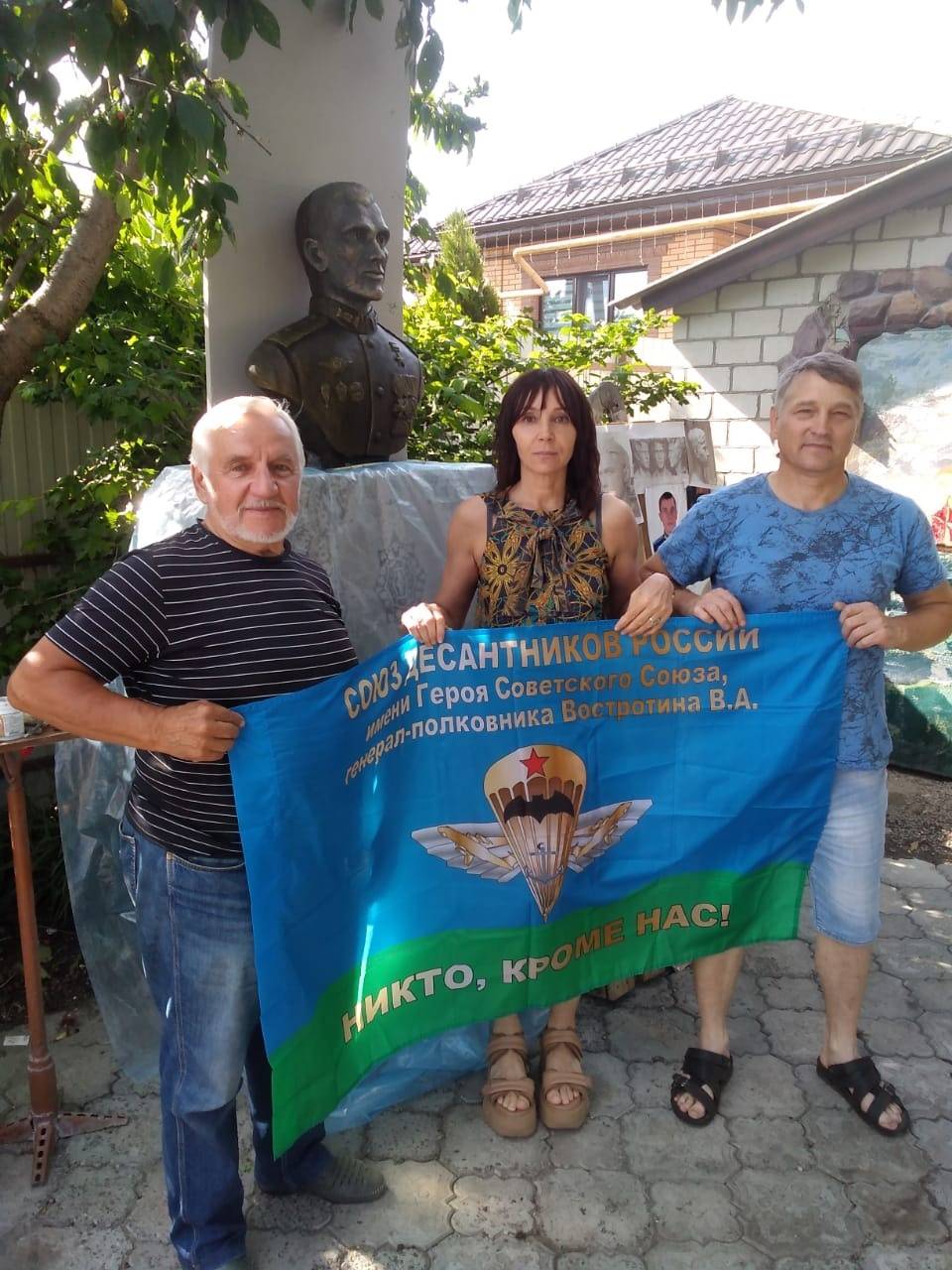 Сегодня в гостях у скульптора побывали мама Героя Анжела Лапшина; председатель Ассоциации поддержки десанта Курской области «Соколы Маргелова» Владимир Армашов; ветеран органов внутренних дел, педагог-организатор Курского Дворца пионеров, член РВИО Владимир Быканов.