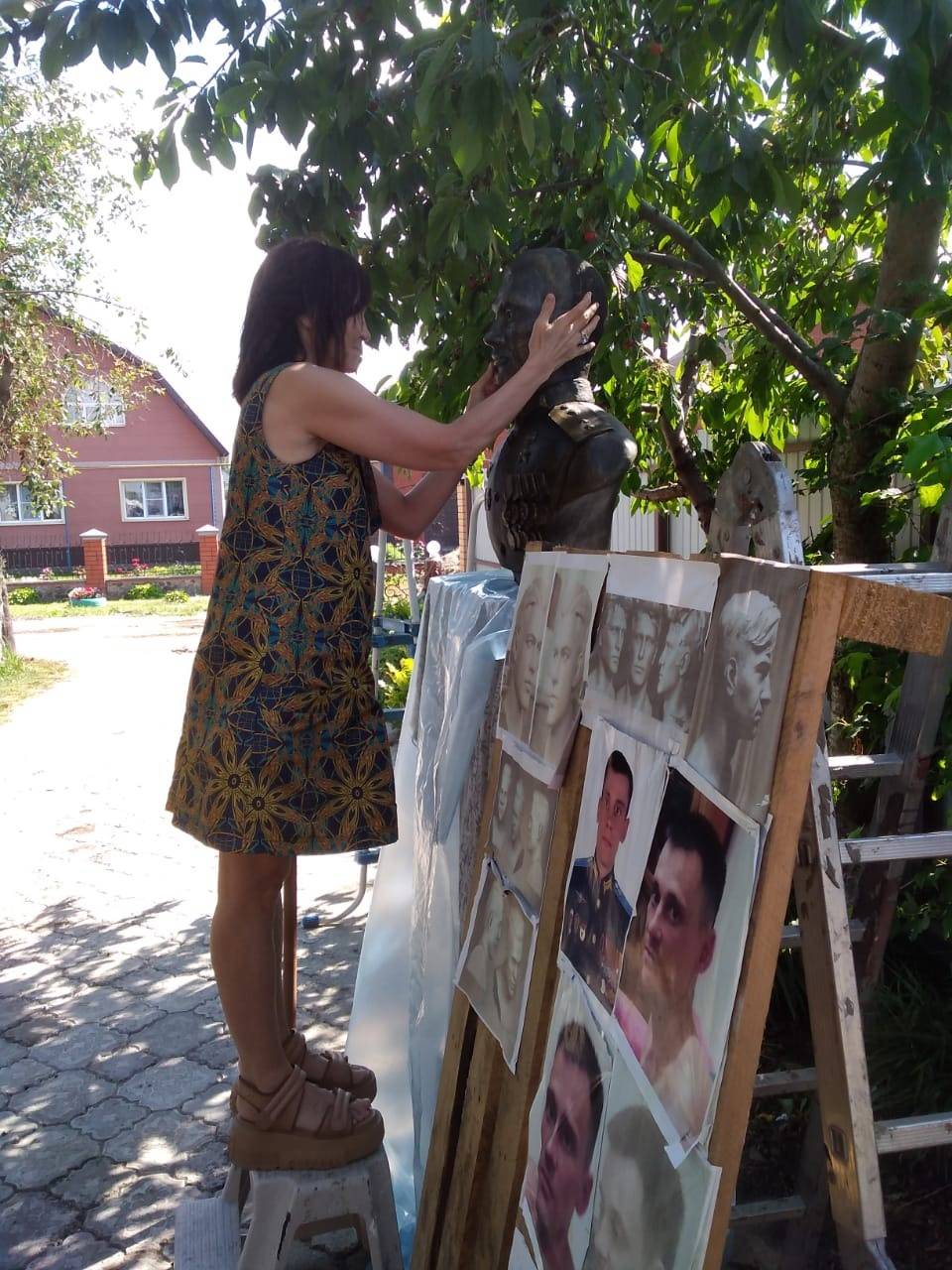 Куряне ознакомились с рабочей моделью бюста. Анжела Владимировна внесла предложения по корректировке скульптурного портрета сына. Гости побывали на месте установки памятника, где уже проведены необходимые подготовительные работы.