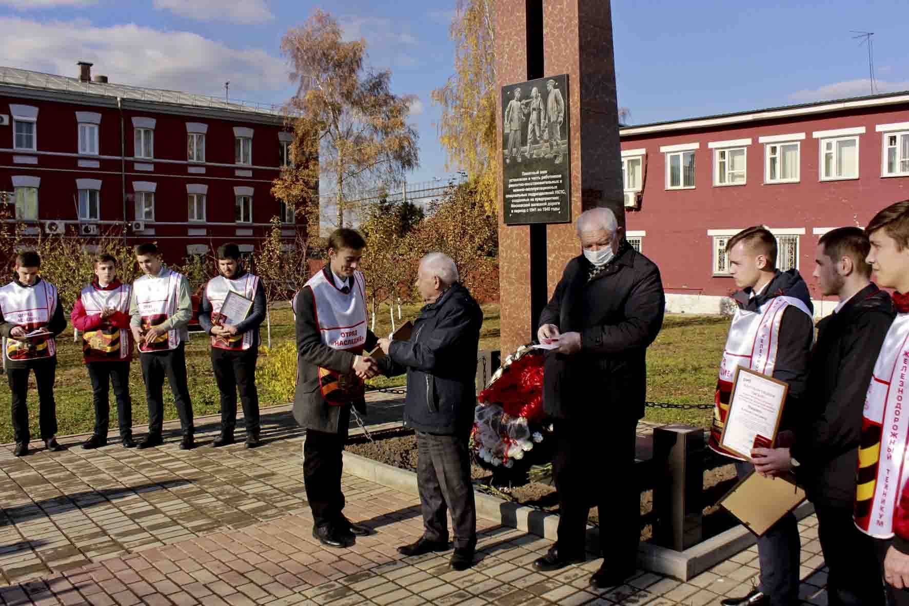 Председатель городского Совета ветеранов, Почетный гражданин города Курска, член РВИО И.В. Малков вручил памятные медали «Активному участнику поискового движения России» членам РВИО – студентам Курского железнодорожного техникума Д.С. Ванину, И.А. Каурову, Н.И. Кокорину, А.С. Мишину. Благодарственных писем Администрации округа и окружного Совета ветеранов удостоены будущие железнодорожники – члены РВИО Д.А. Перверзев, П.Р. Февронин, К.О. Полячихин, Е.С. Юркин.
