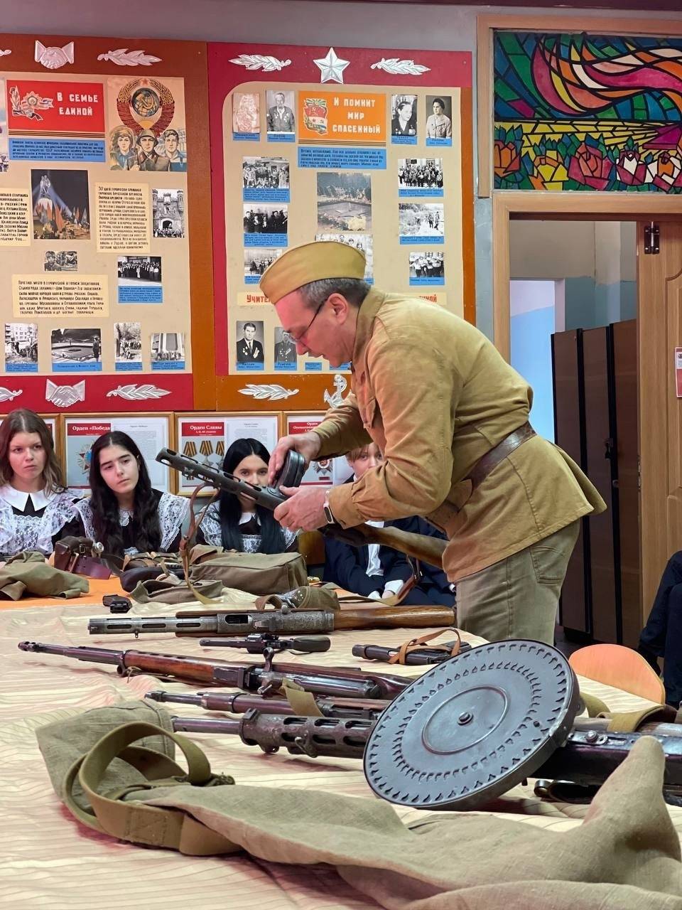 В.В.Ефименко, боец военно-исторического клуба «Курская дуга» , член РВИО организовал для учащихся выставку под названием «Оружие Победителей».