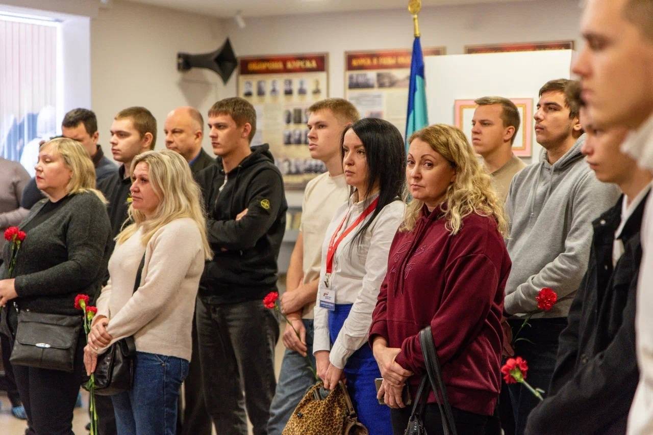 На открытие выставки пришли студенты Курского монтажного техникума, который с отличием окончил Артур Лапшин. Ребят сопровождала педагог Артура Любовь Боева, потерявшая в ходе СВО мужа, преподавателя техникума Григория Петунина. В торжественной церемонии приняла участие мама Артура Лапшина.